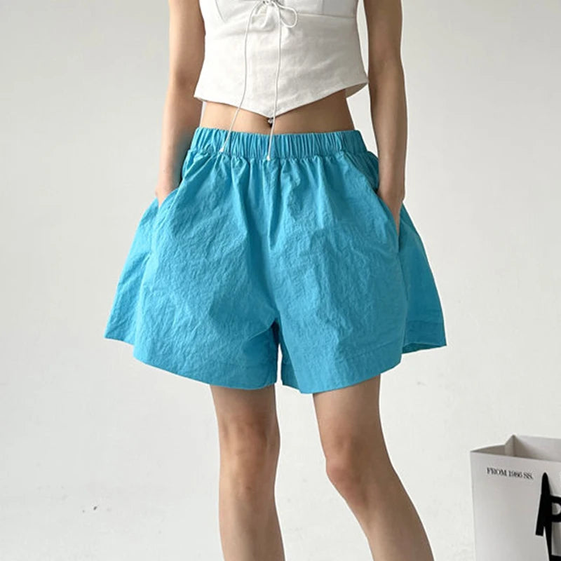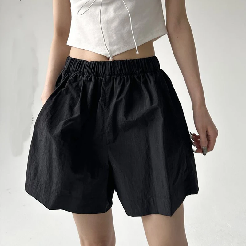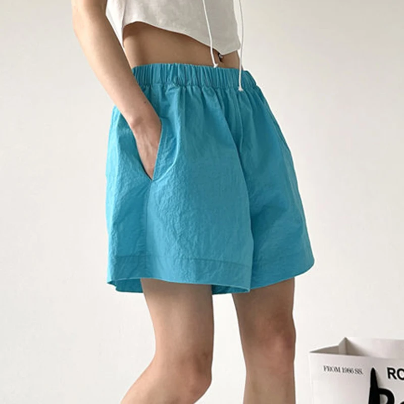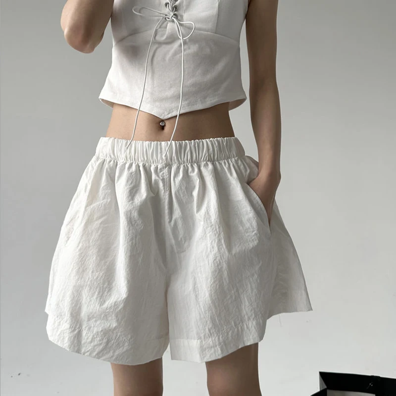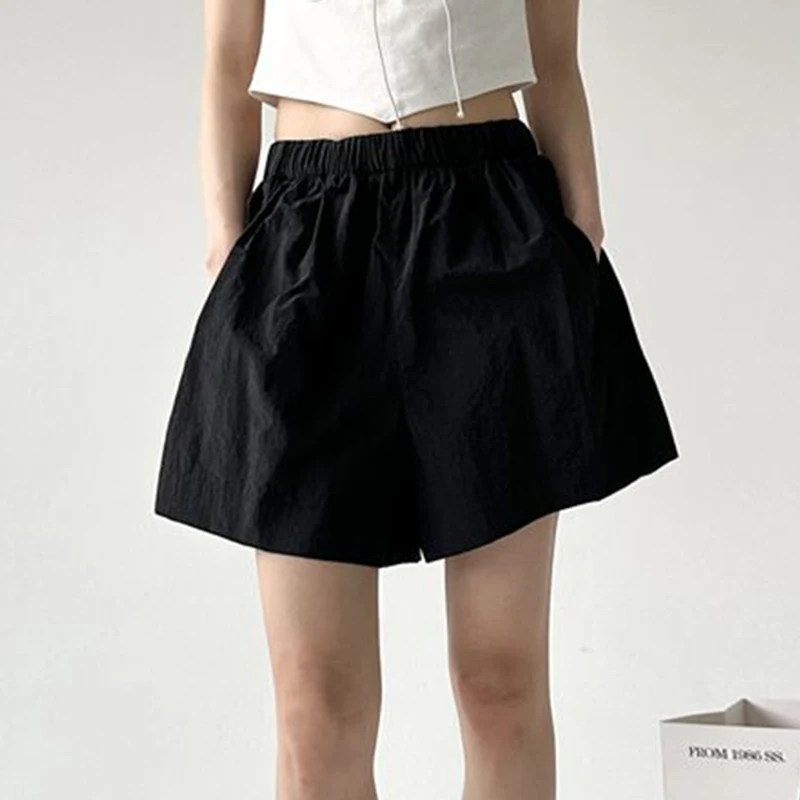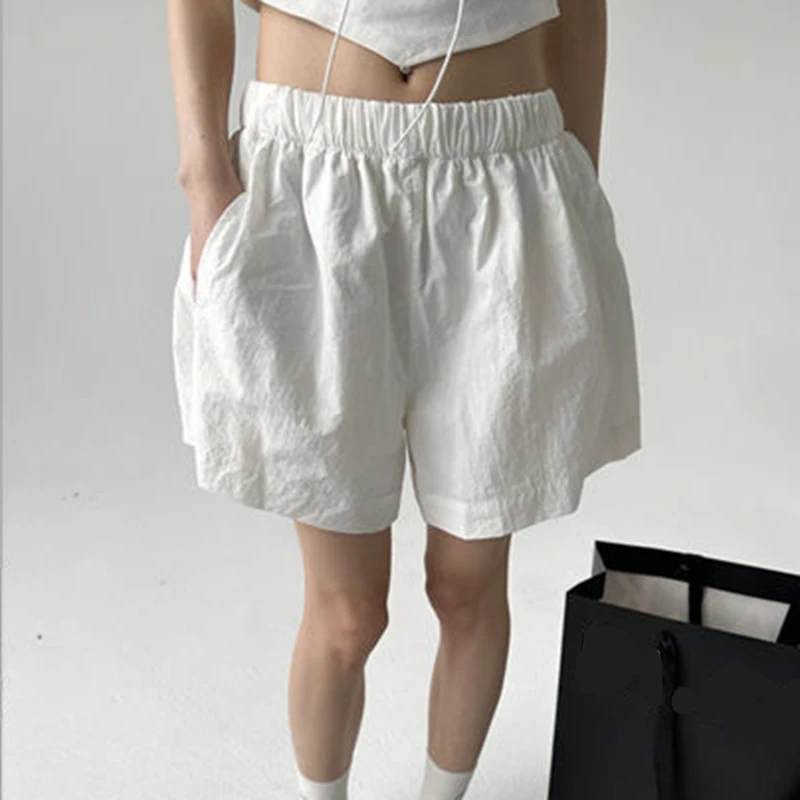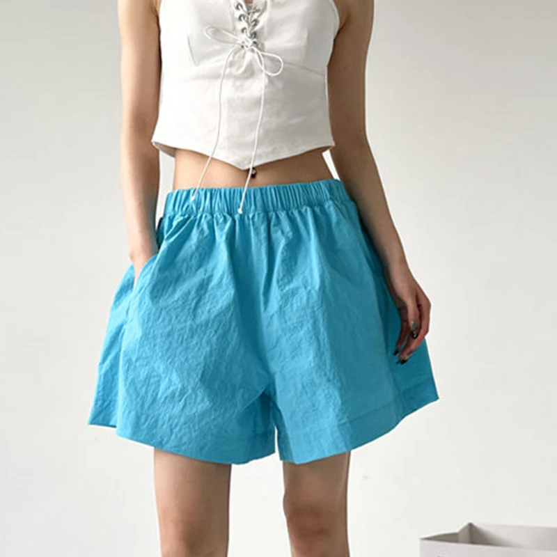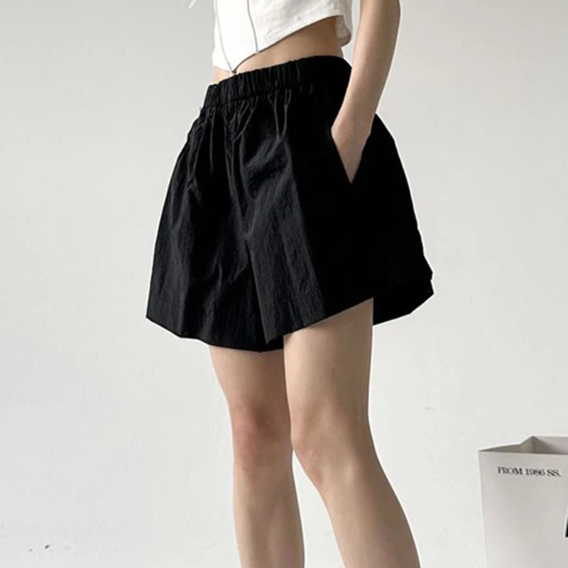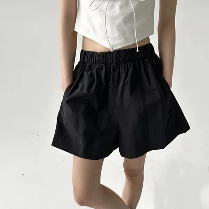 2025 New Elastic Waist Shorts for Women Summer Thin Style High Waist Short Pants Female Casual Solid Short Wide-Leg Pants Mujer