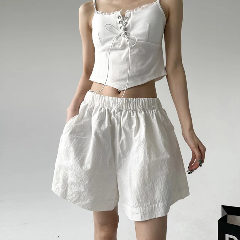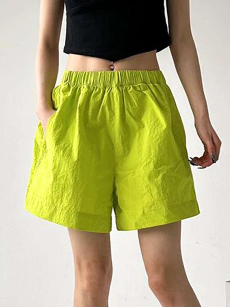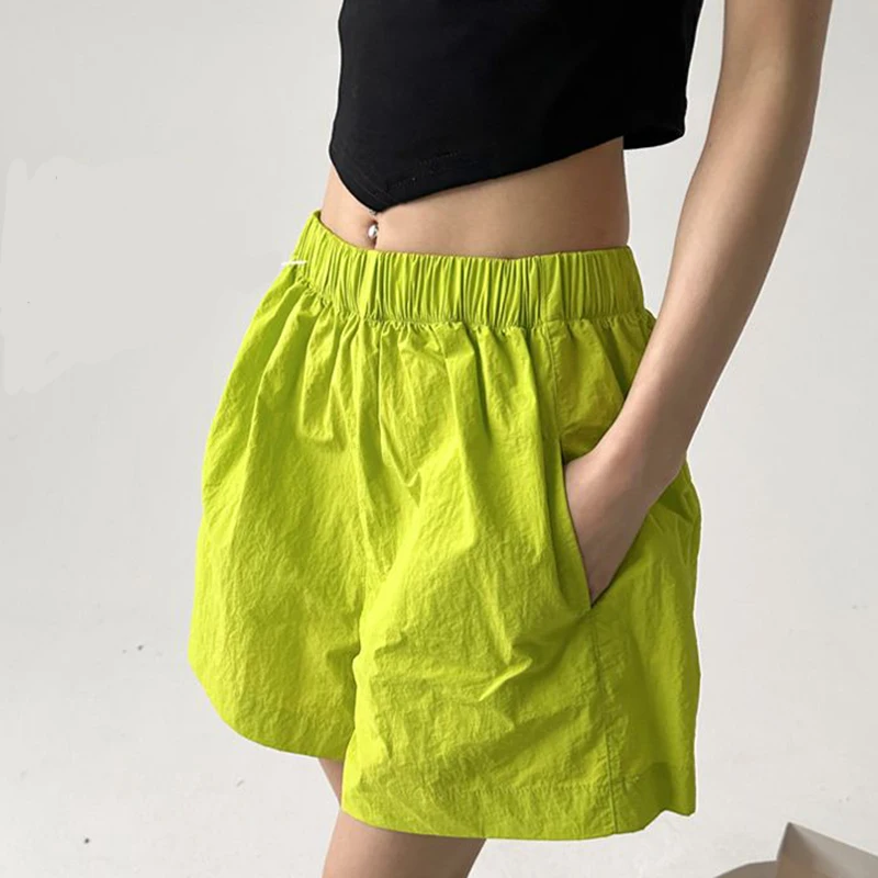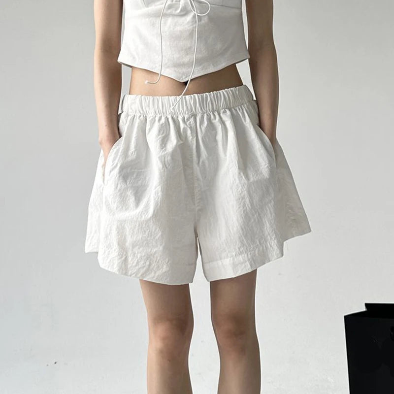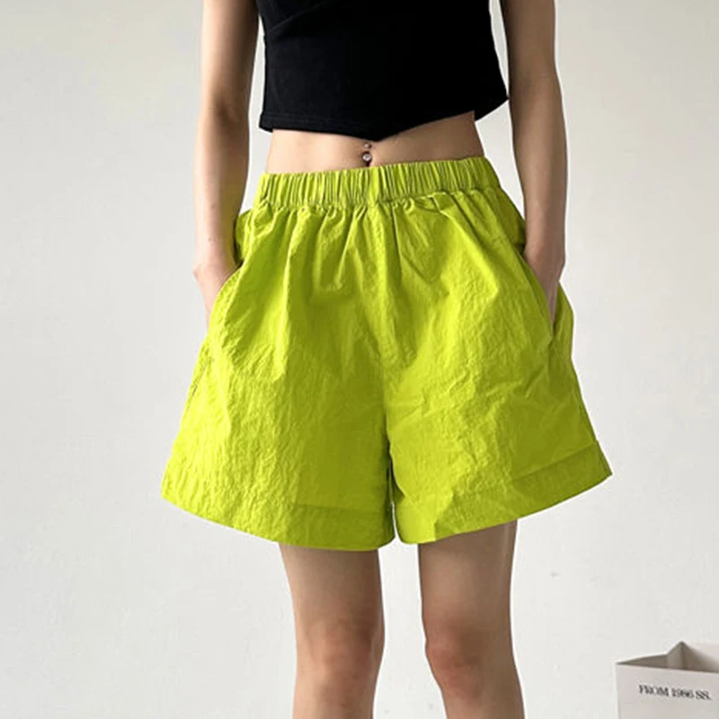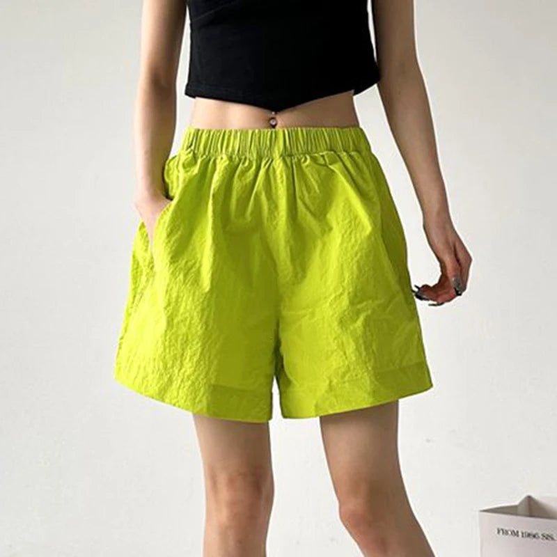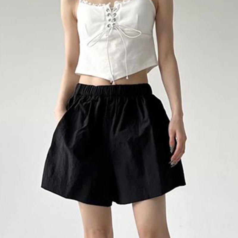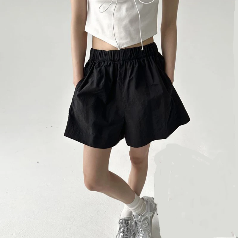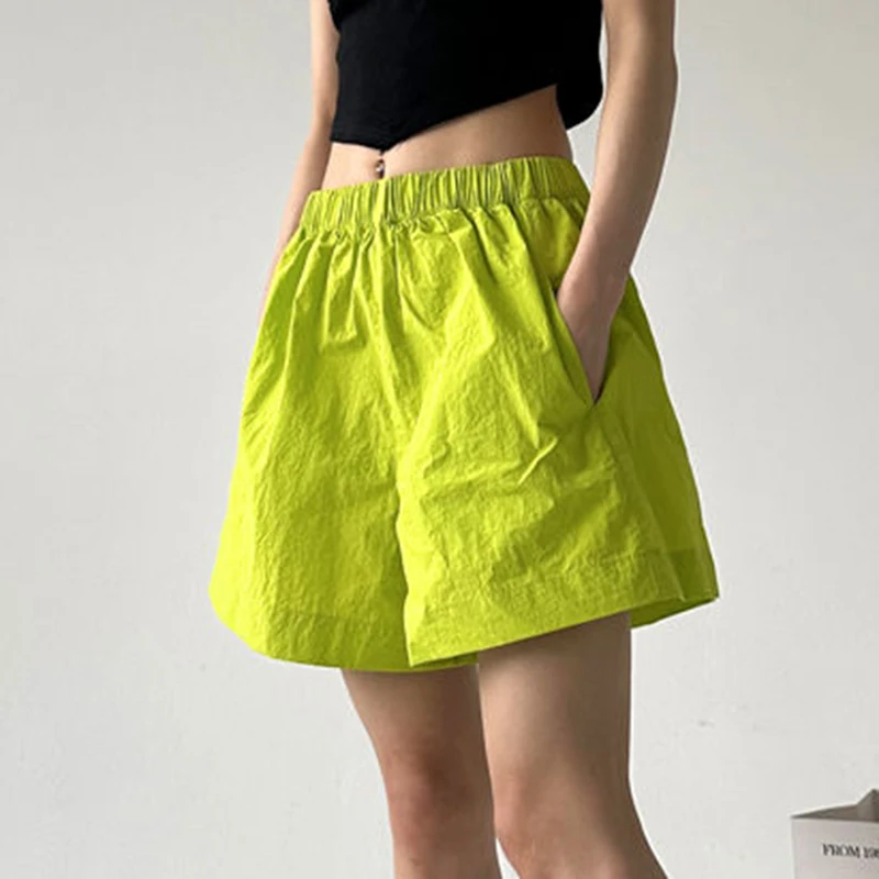 2025 New Elastic Waist Shorts for Women Summer Thin Style High Waist Short Pants Female Casual Solid Short Wide-Leg Pants Mujer