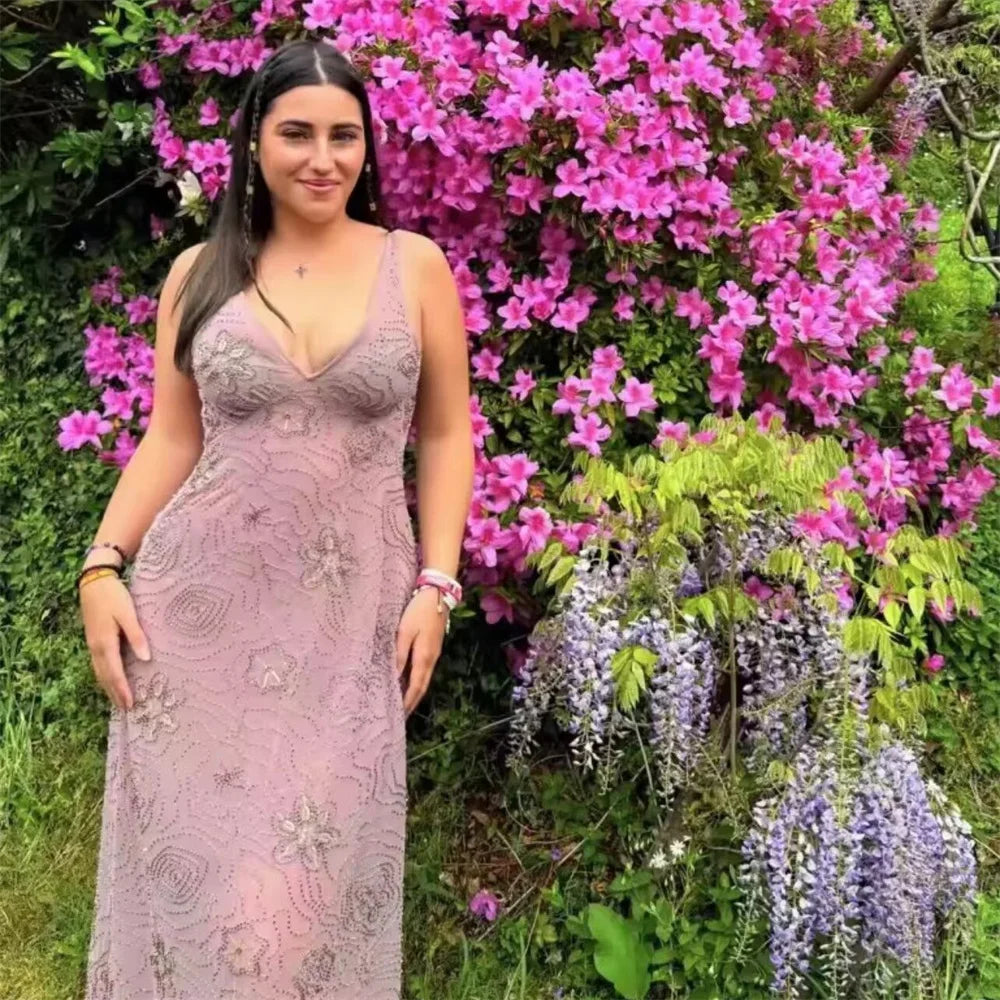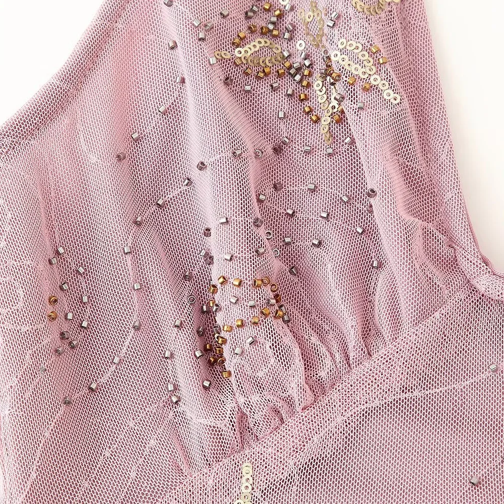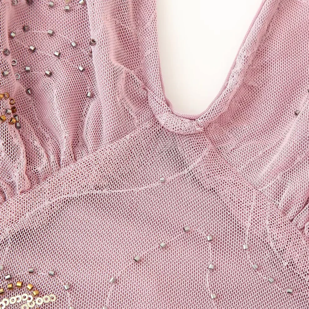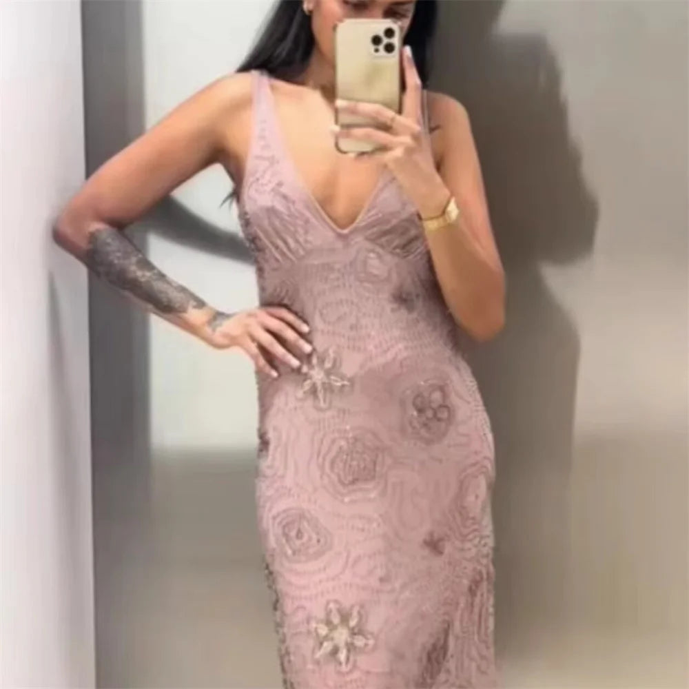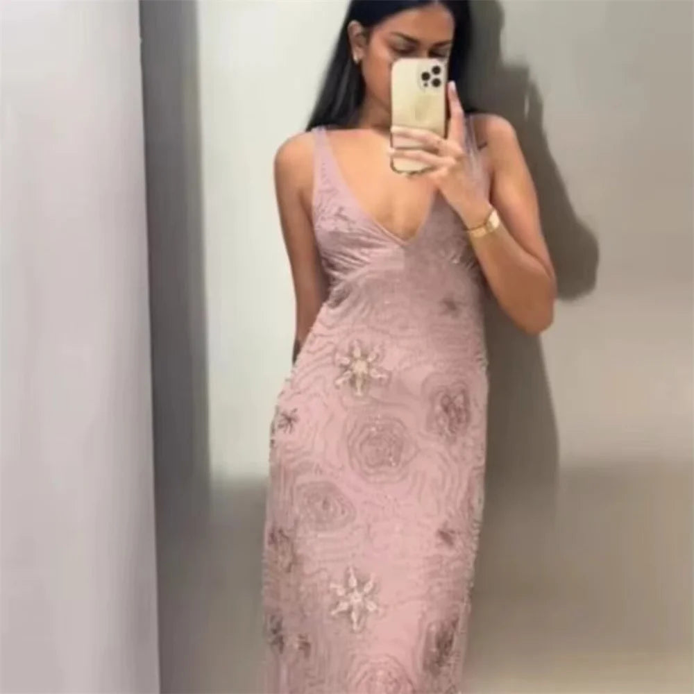 2025 new women's casual and elegant design with European and American style bead embellishment, backless suspender, MIDI dress