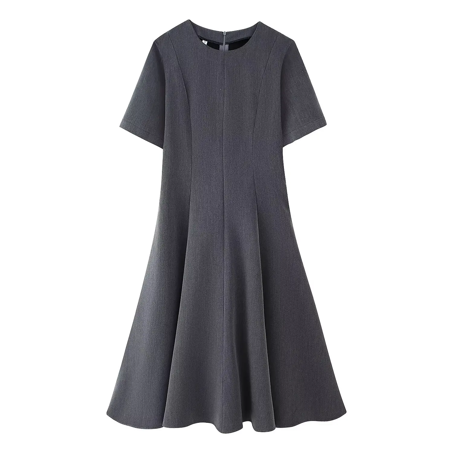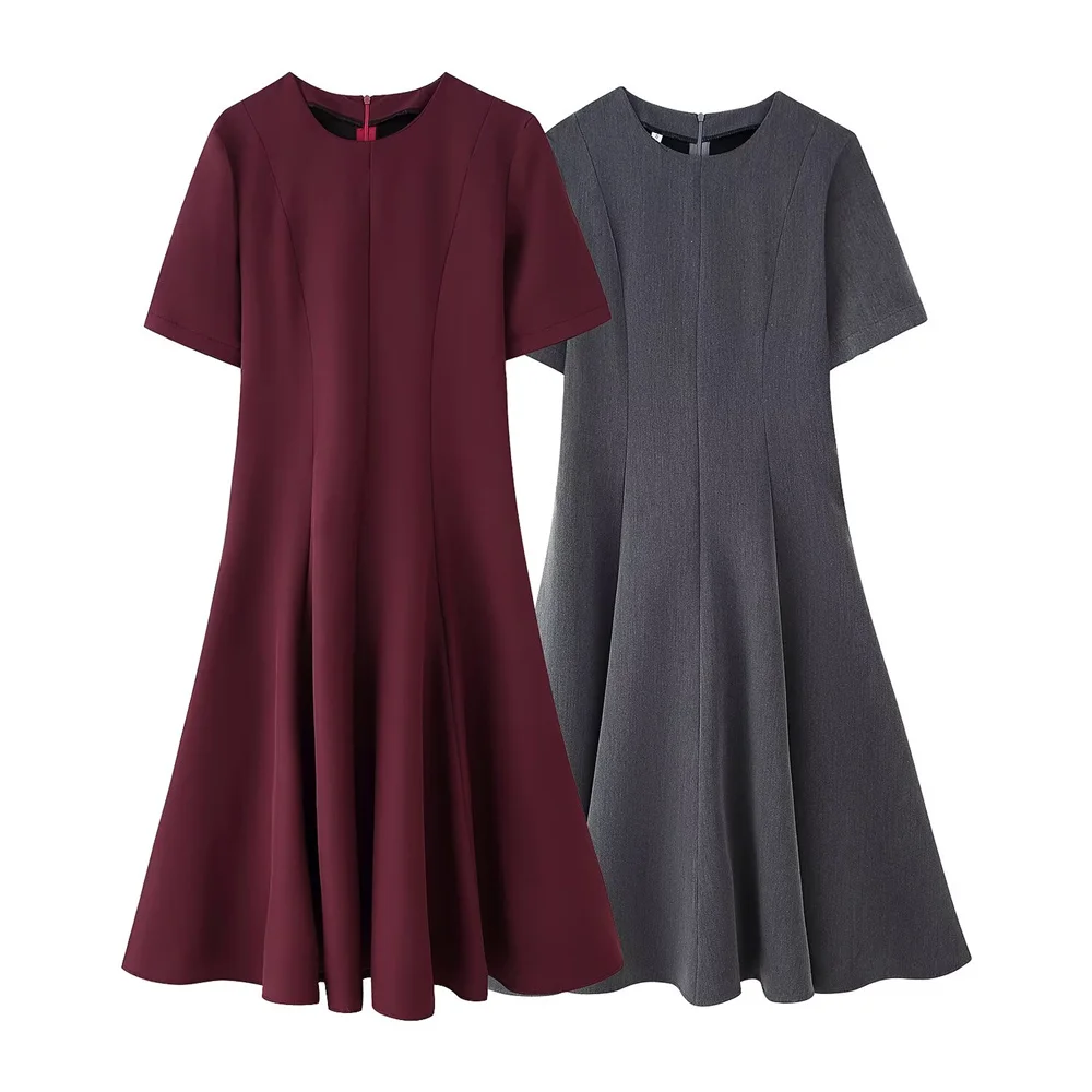 2025 new women's clothing European and American style fashionable design sense two-color wave wide swing round neck dress