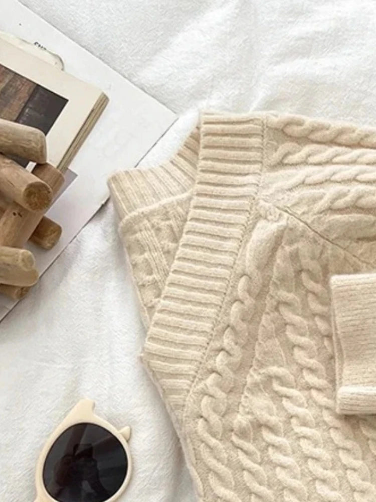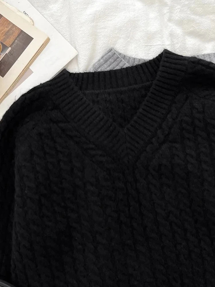 2026 New Thickened V-Neck Twisted Sweater Women's Autumn Winter Knitted Base Layer Top Lazy Style Design Knitwears Crop Top