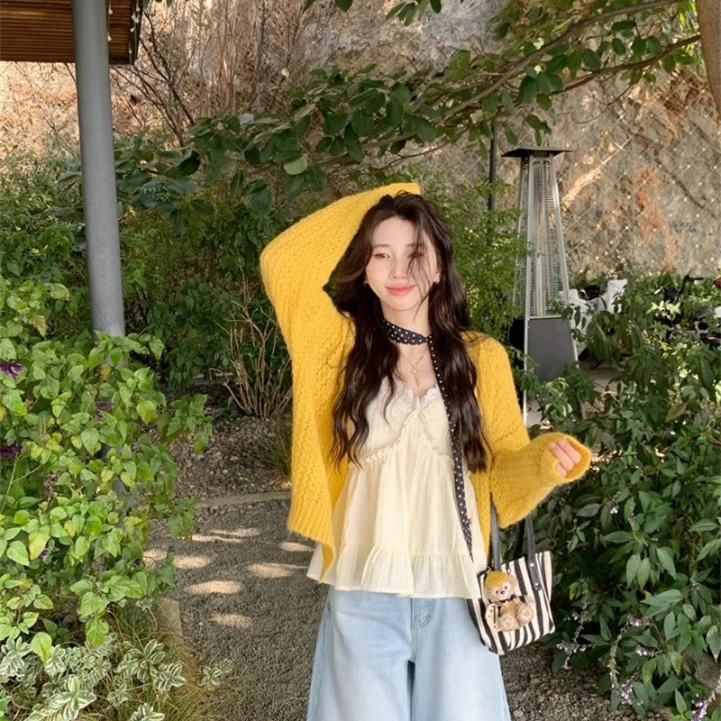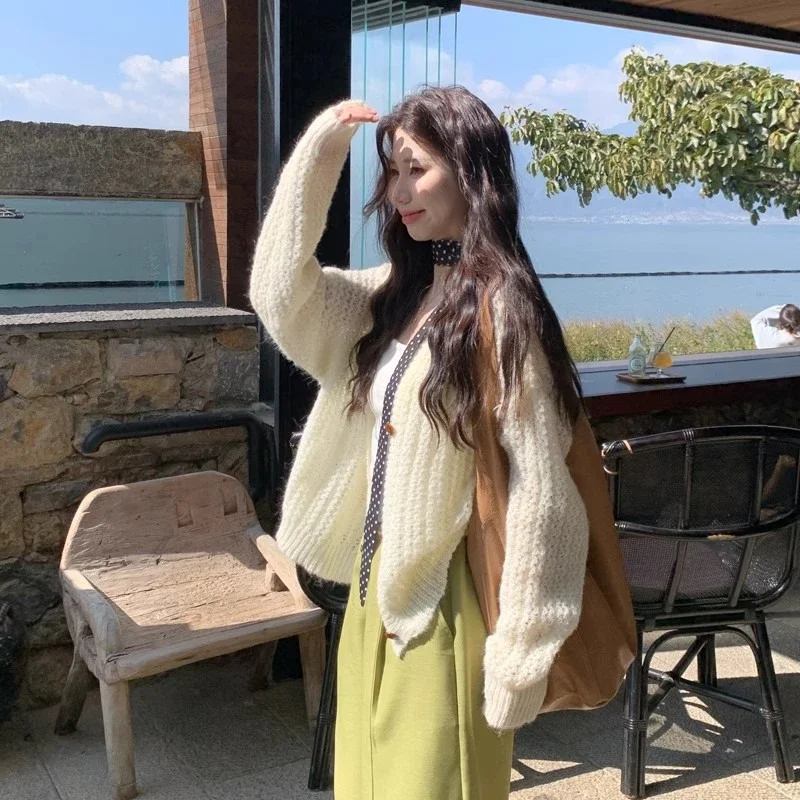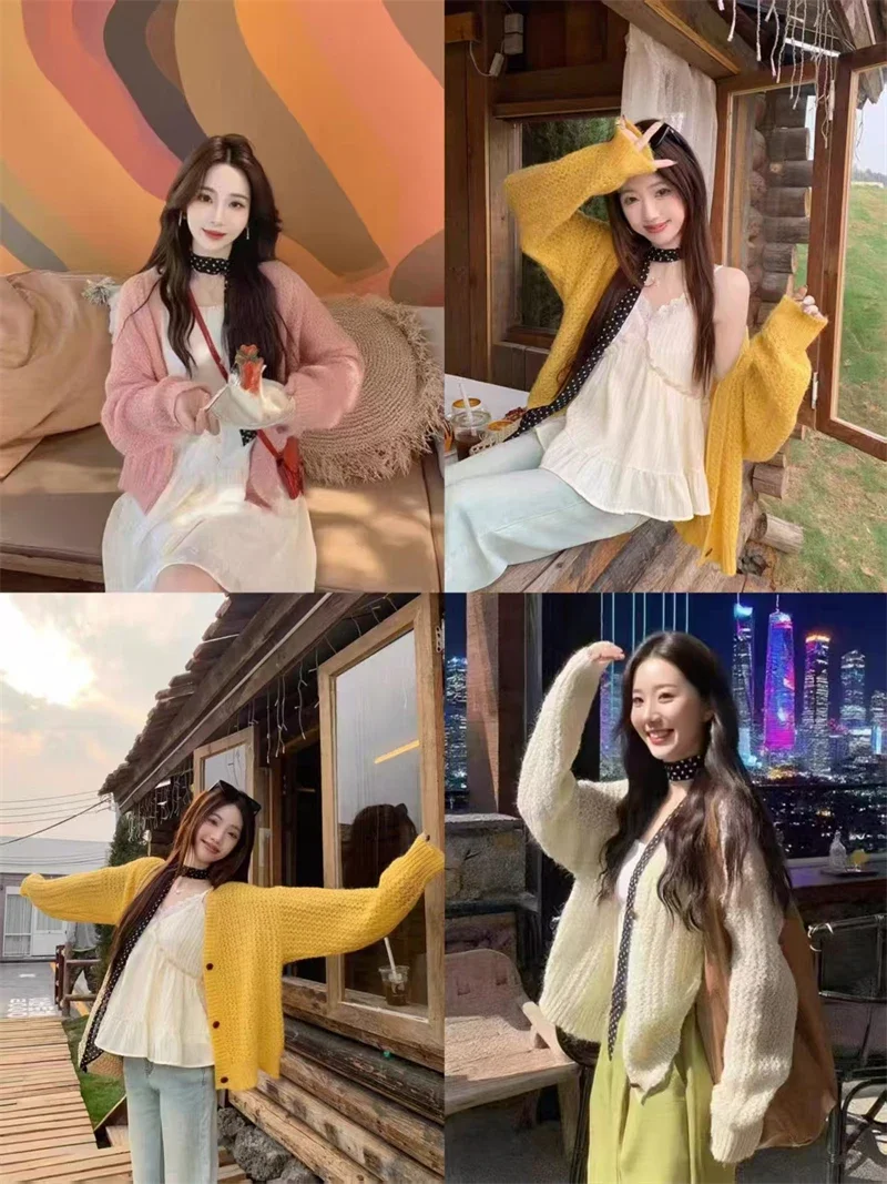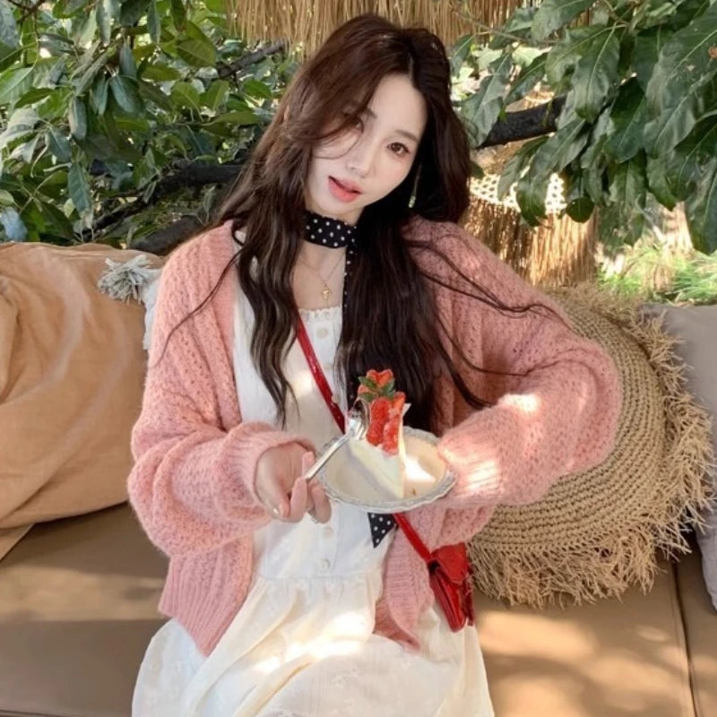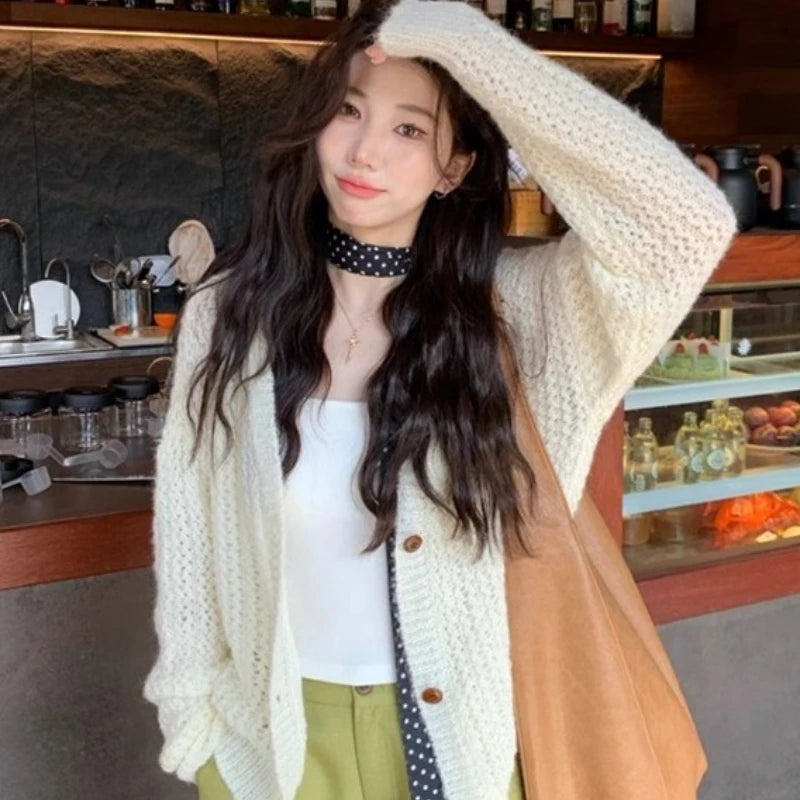 Autumn New Women's Loose Long-sleeved Cardigan Sweater Fashionable Women's Elegant Casual Knitted Hollow Versatile Top