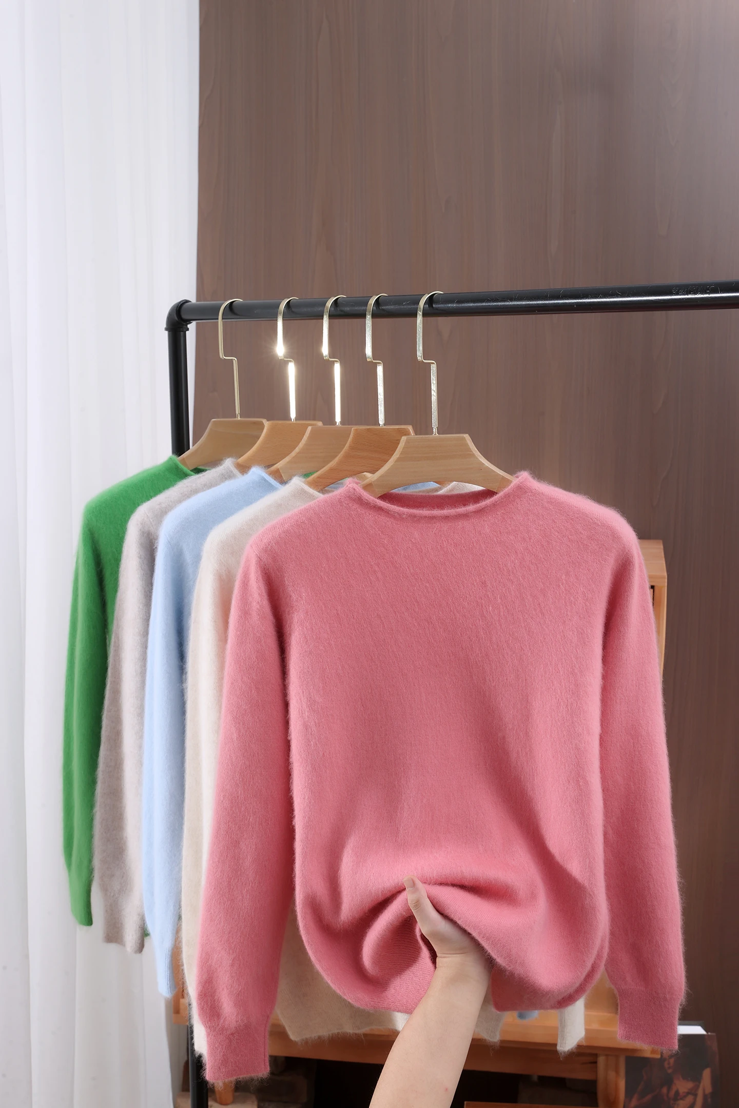 Autumn Winter Mink Cashmere Women Sweater O-Neck Pullover Fashion Basic Casual SolidClothing 100% Mink Cashmere Knitwear Tops
