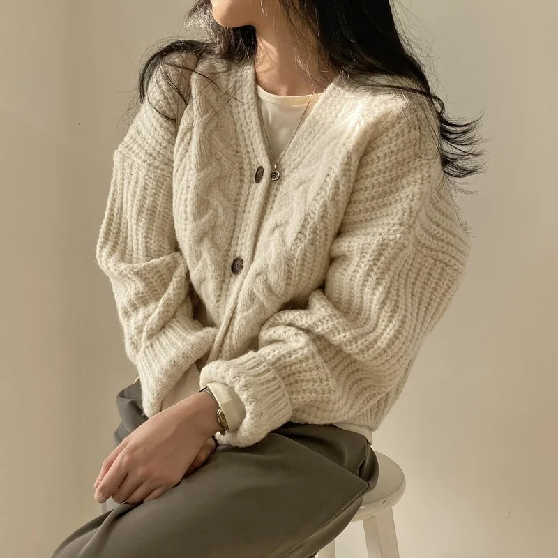 Autumn Winter Women Cardigan Sweaters Fashion Female Long Sleeve V-neck Loose Knitted Shirt Jackets Casual Sweater Coats