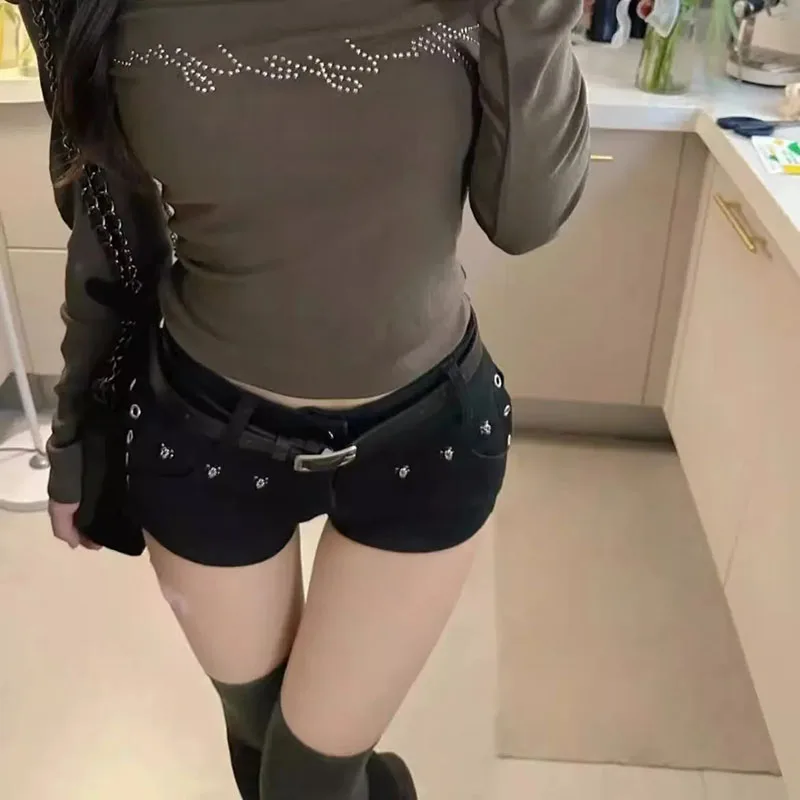 Black Sexy Low Waist Y2K Jean Shorts Woman Punk Gothic Popular Denim Super Shorts Female Korean Fashion Slin Fit Hot Short Pants