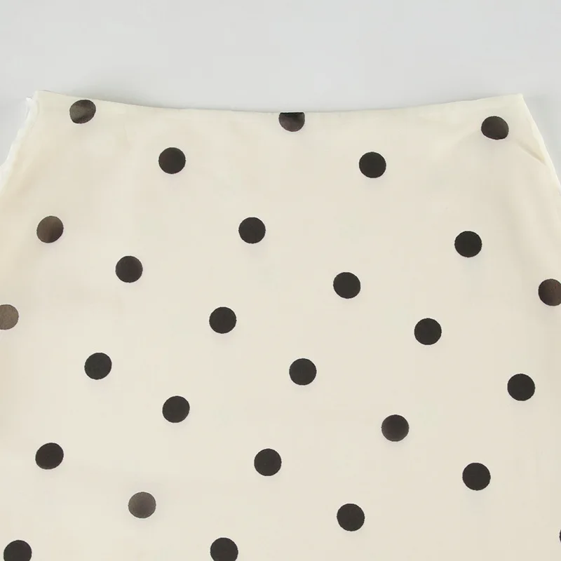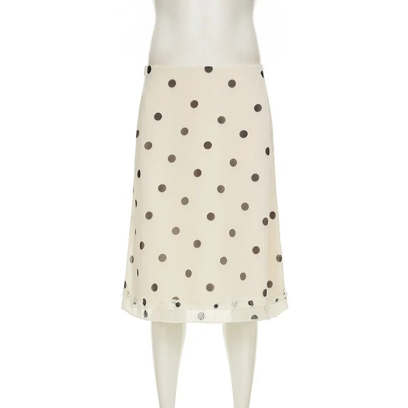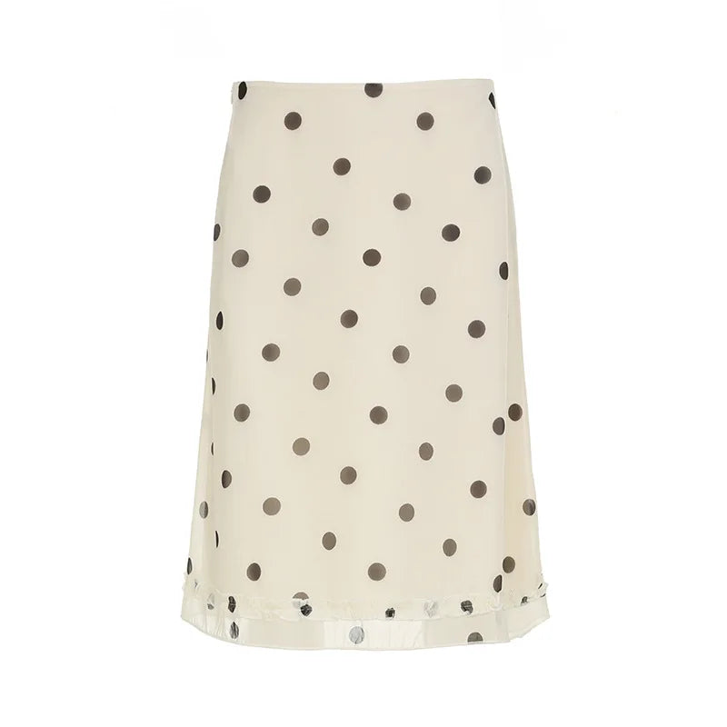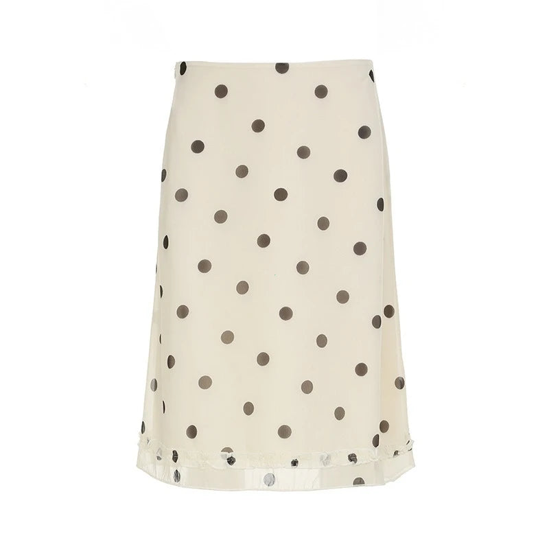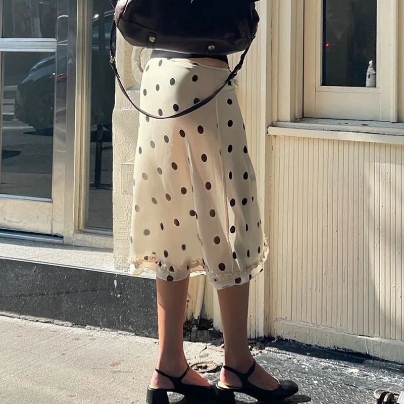 Casual Women Polka Dot Skirts Lettuce Trim Beige Elegant Midi Skirts Streetwear Simple All-match Bottom Clothing Spring