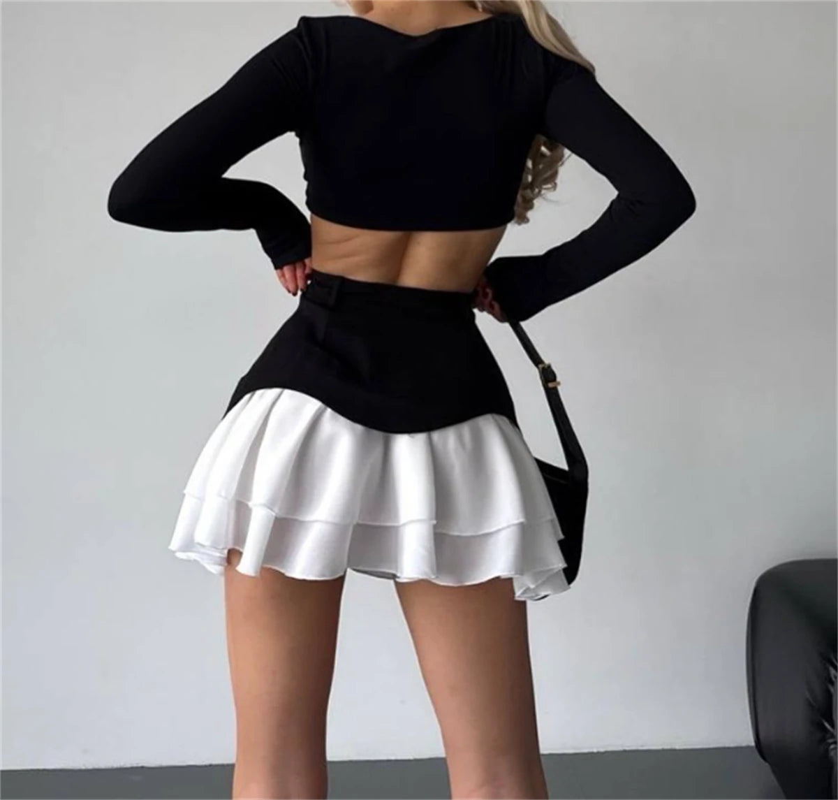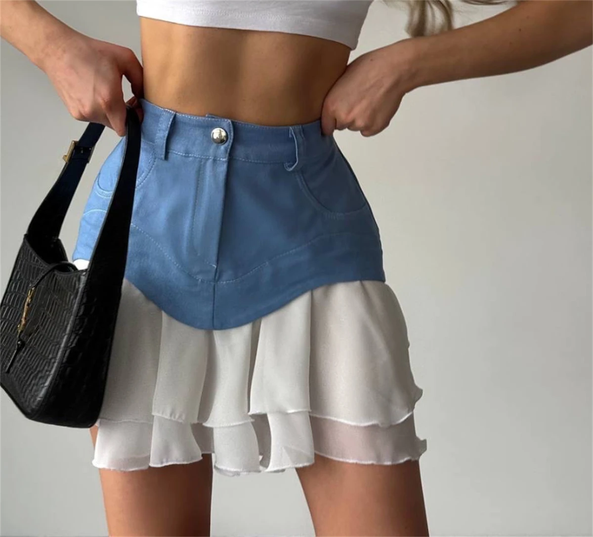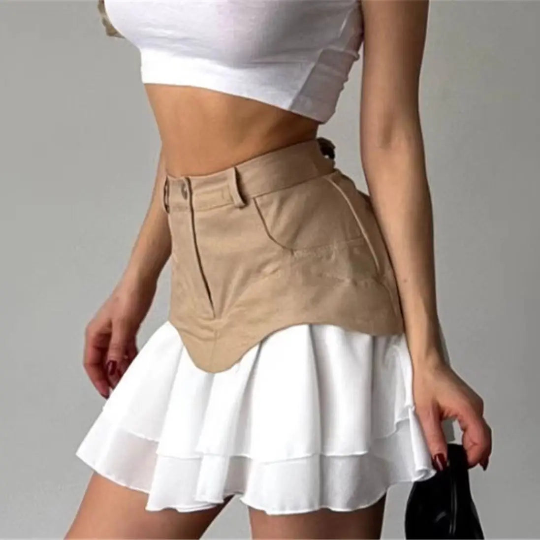 Chic Ruffles Women's Midi Skirt High Waisted Pleated Splice A Line Skirts 2025 Fashion Spring Summer New In Clothing Lady Street