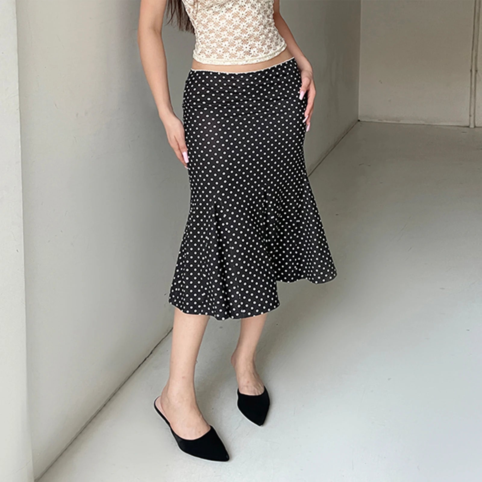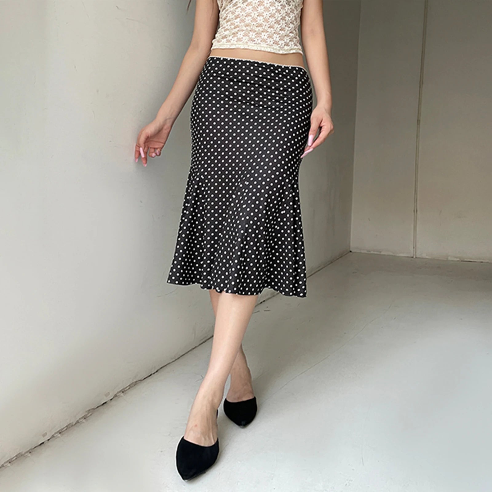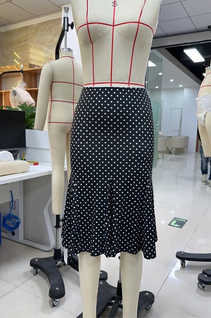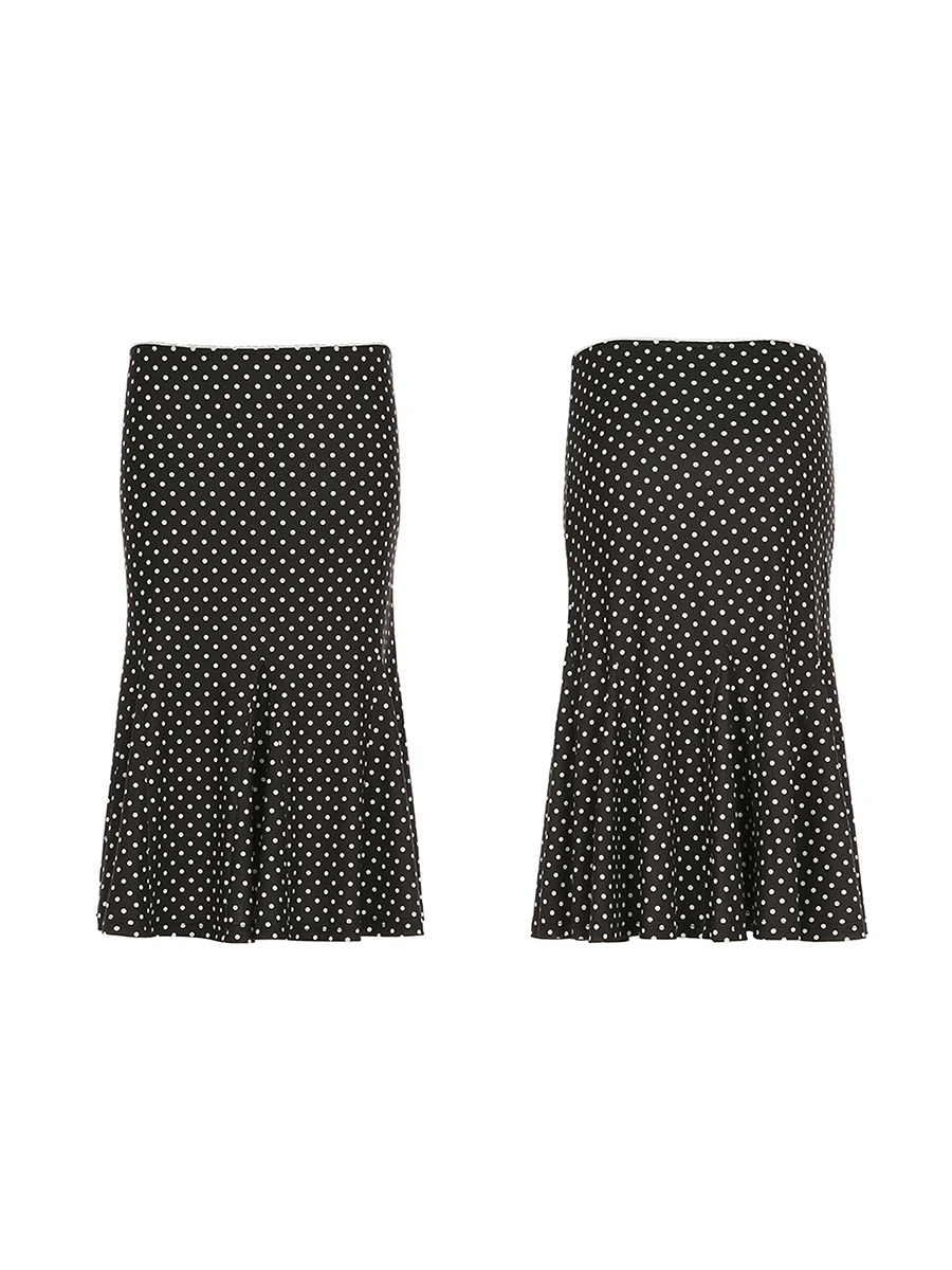 Dot Print Low Waist Skirts Spring Summer Vintage Casual Skirts Women Fashion Midi Skirts