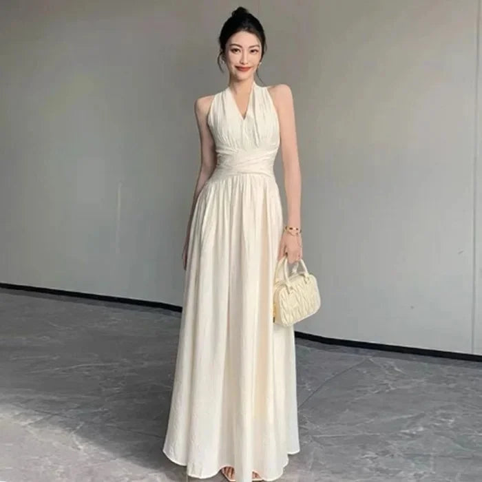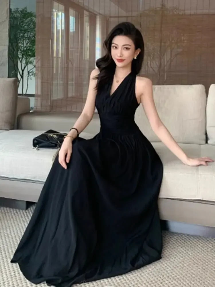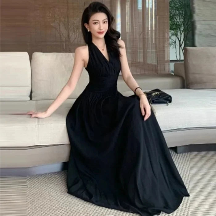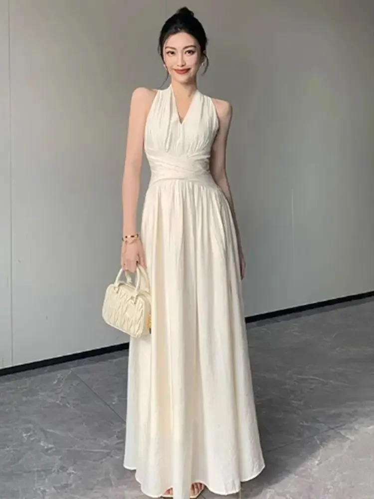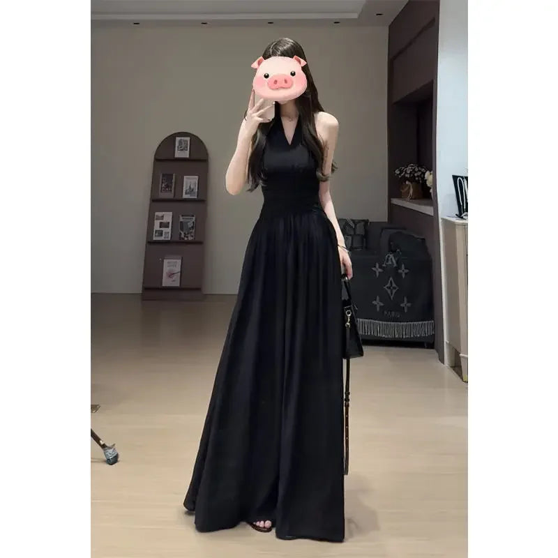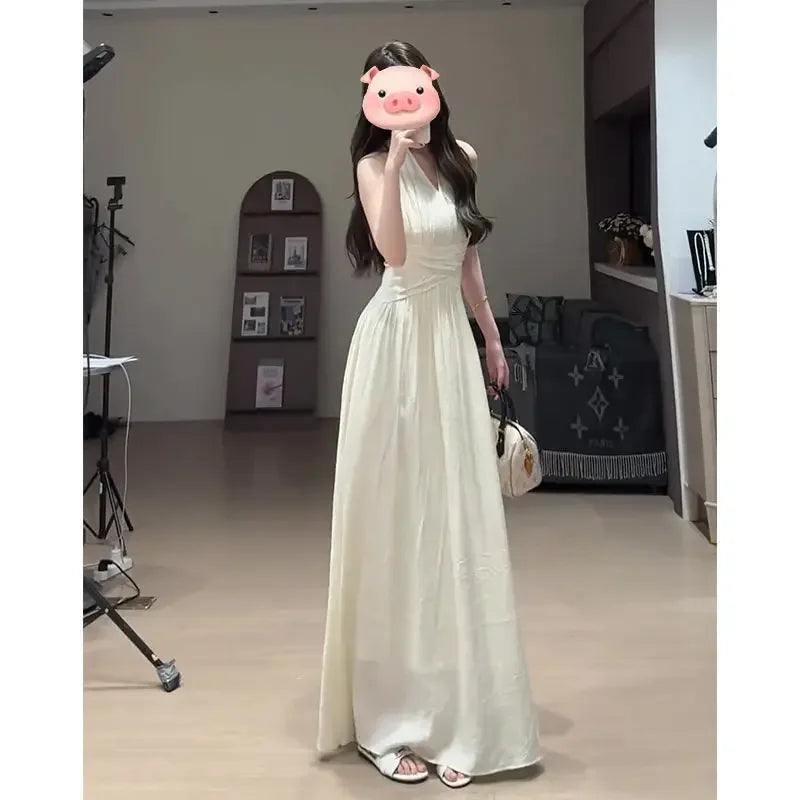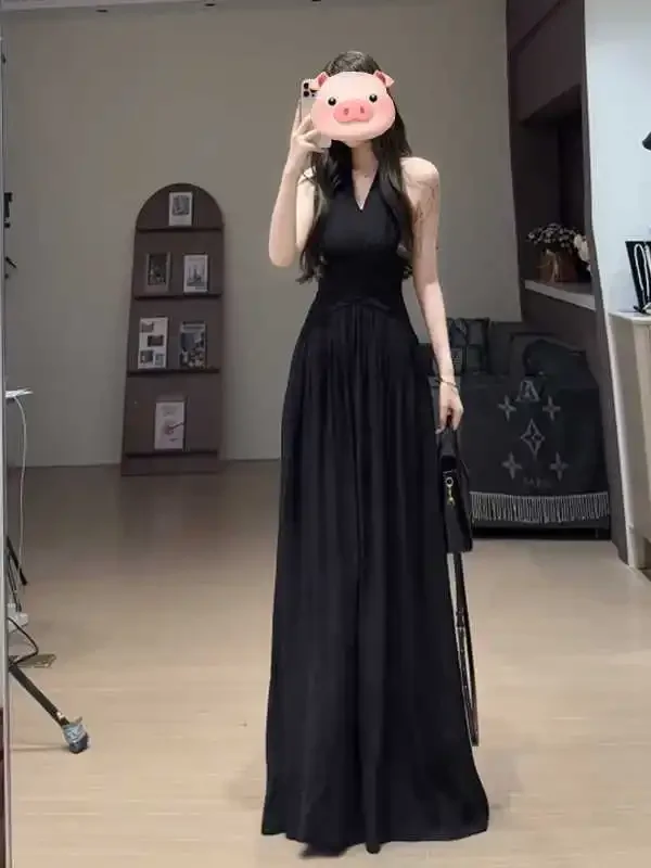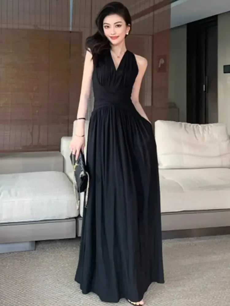 French Style Sleeveless V-Neck Long Dress Women's Summer New Beautiful Waist-Cinching Slimming Maxi Skirt Elegant Gown