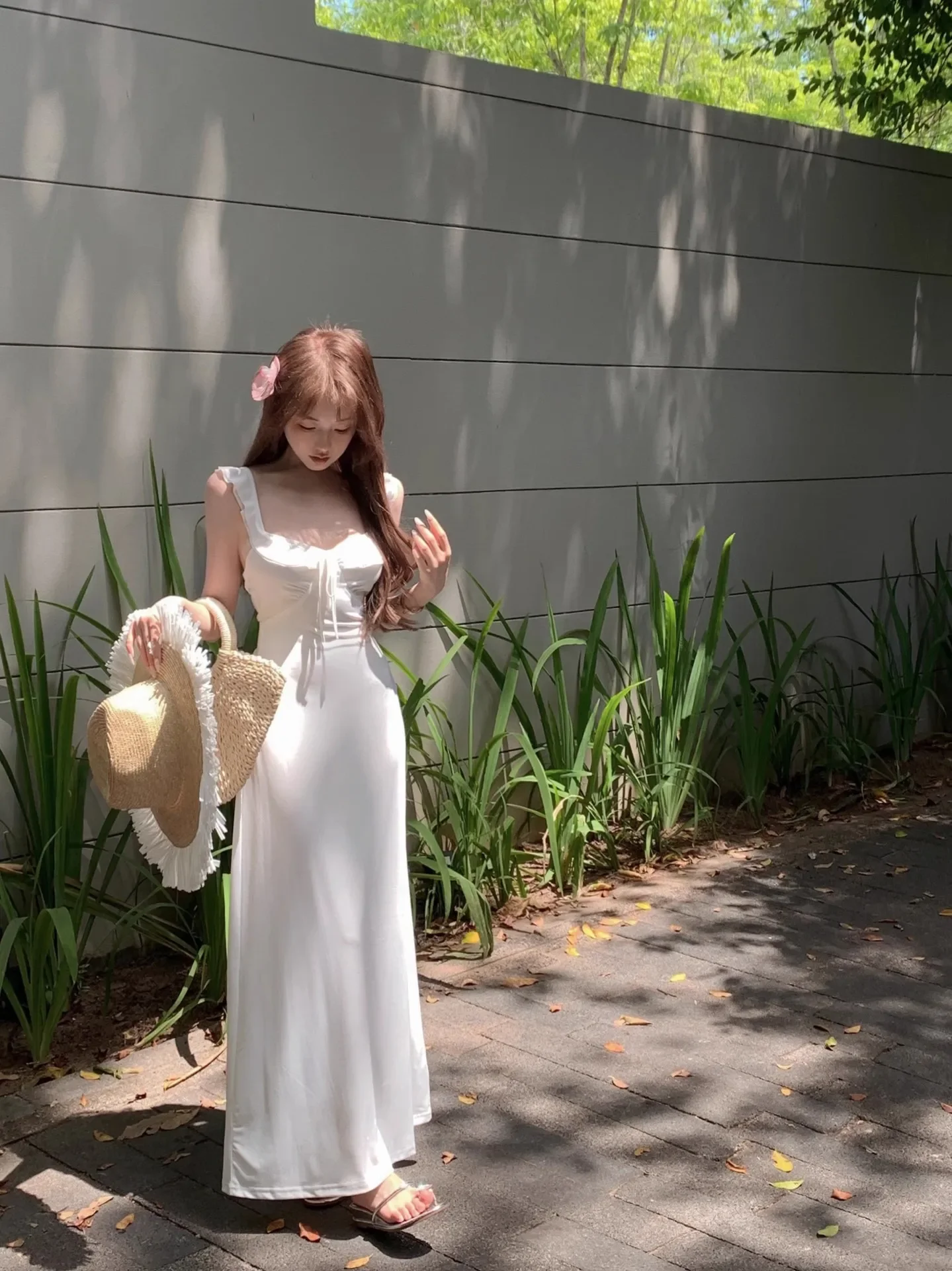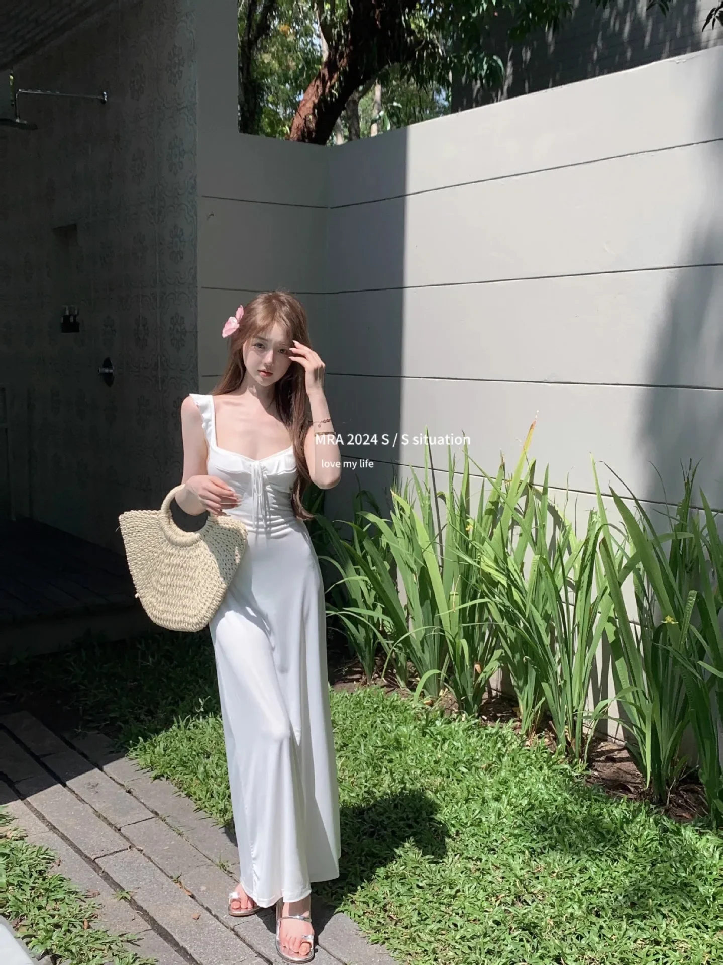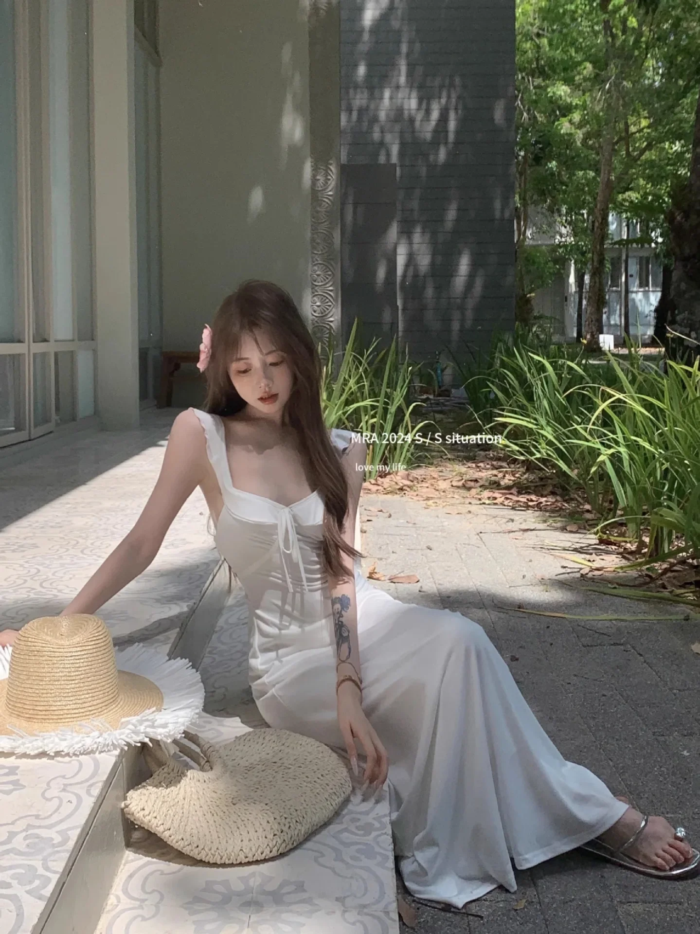 • Elegant Design : This white strap backless dress features a V-neck design and a beautiful long skirt, perfect for summer seaside holidays.