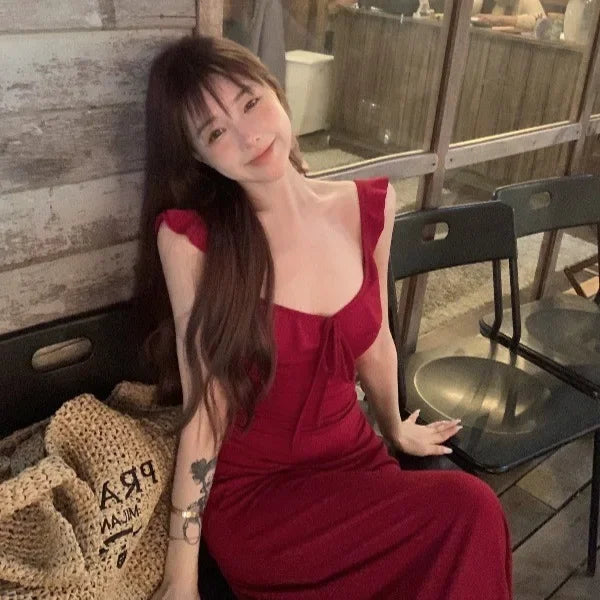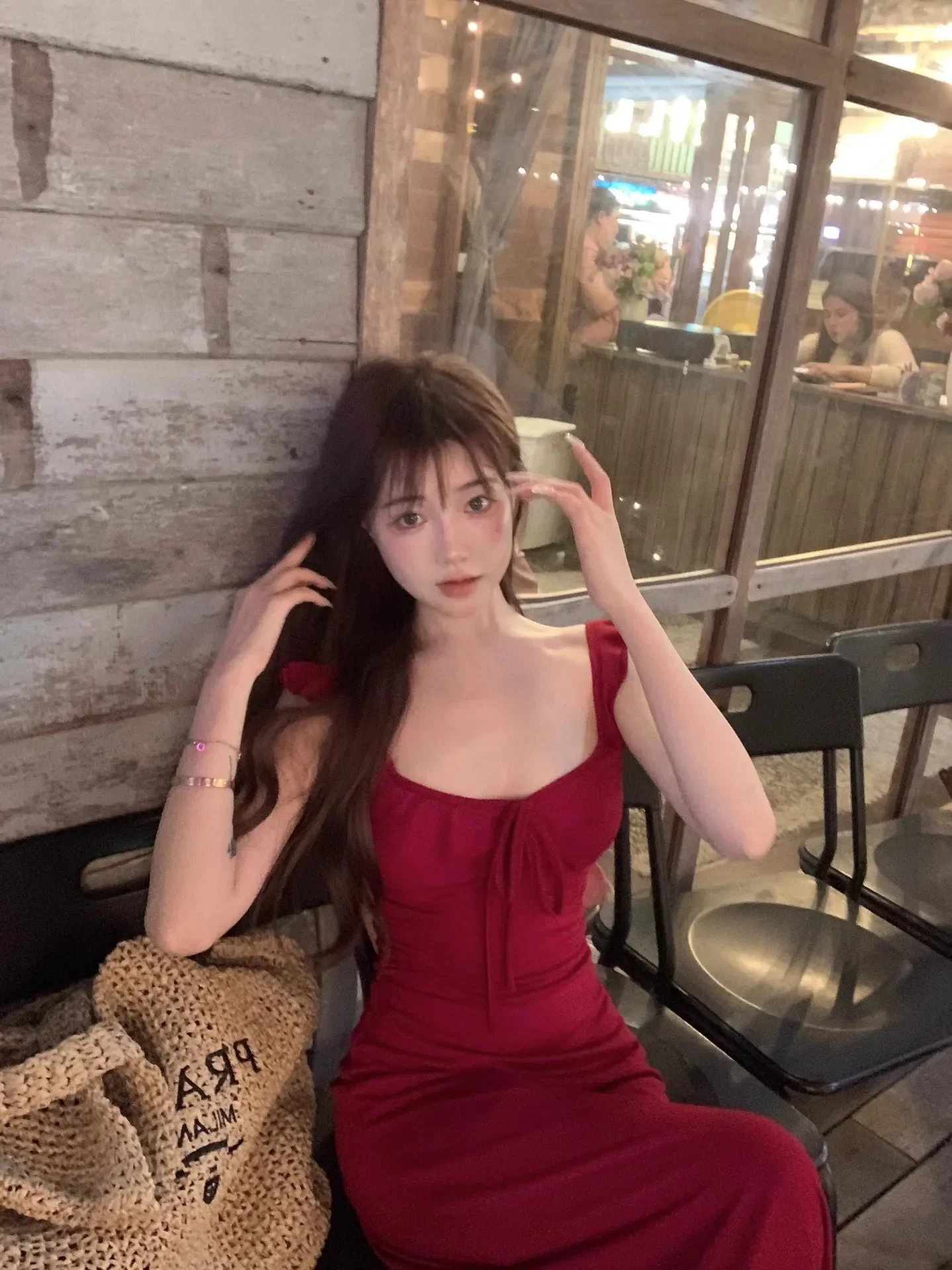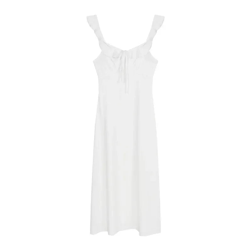 Gentle Wind White Strapless Backless Dress Women Summer New Beach Vacation Beautiful Long Dress V-neck Knee-length Skirt