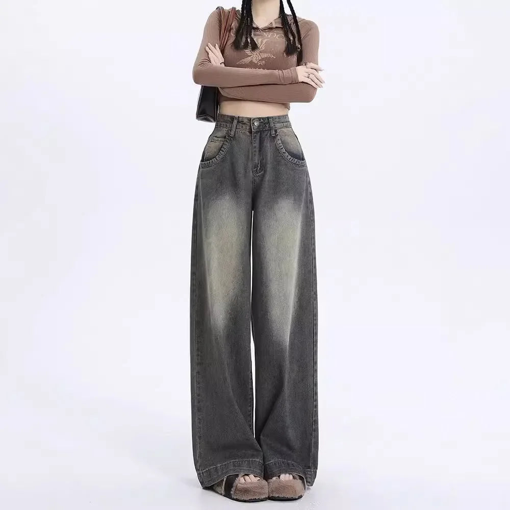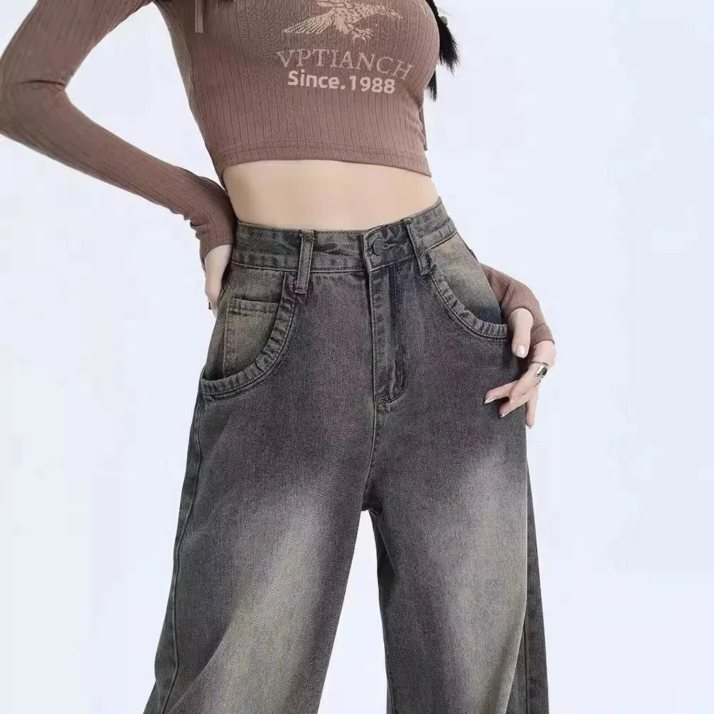 New Arrival Fall 2023 High-Waisted Vintage Wide-Leg Jeans Women's American Style Straight-Leg Casual Loose Fit Denim Trousers
