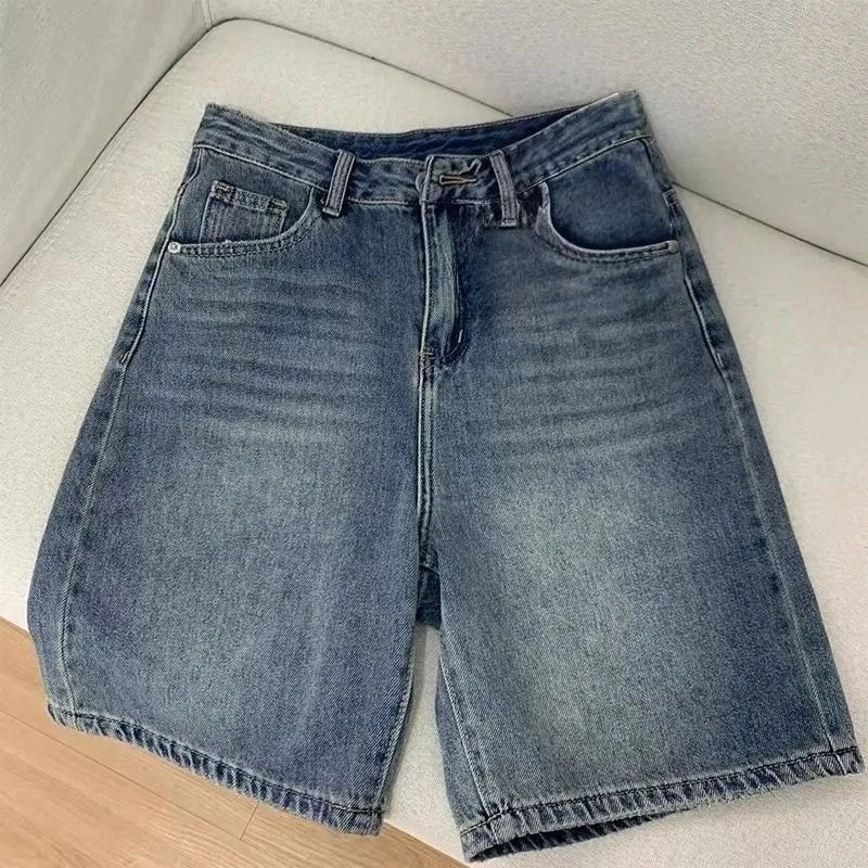 Spring Summer Women Casual Denim Shorts Fashion Female Wide Leg Short Jeans Knee Lenght Denim Pant Women High Waist Shorts Girls