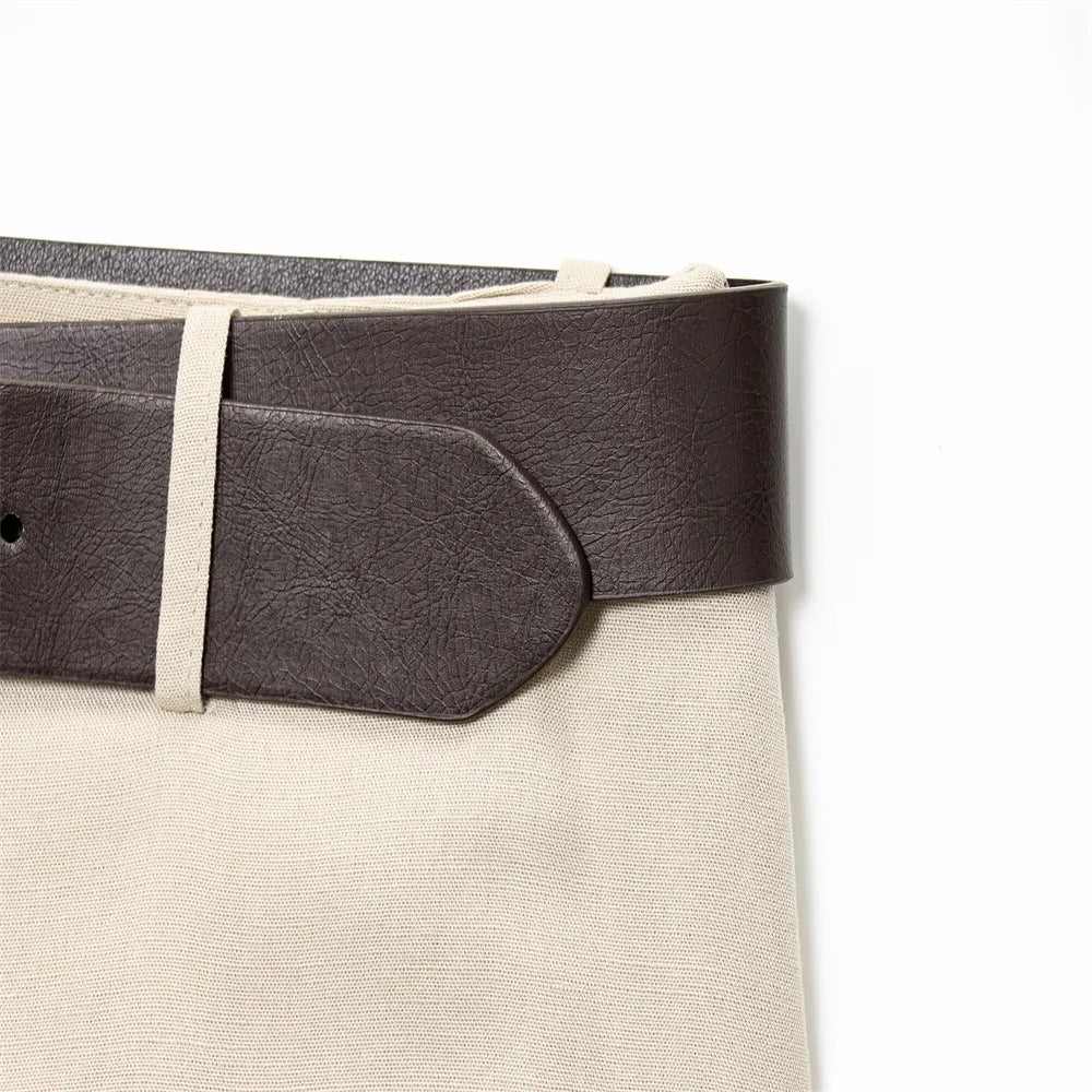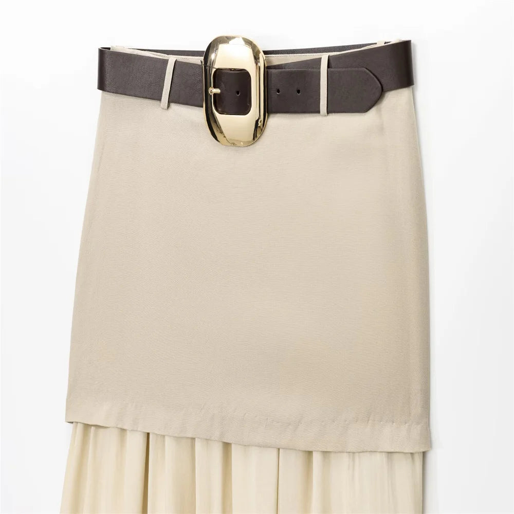 Summer New Women's Fashion Casual European and American Style with Belt Splicing Midi Skirt