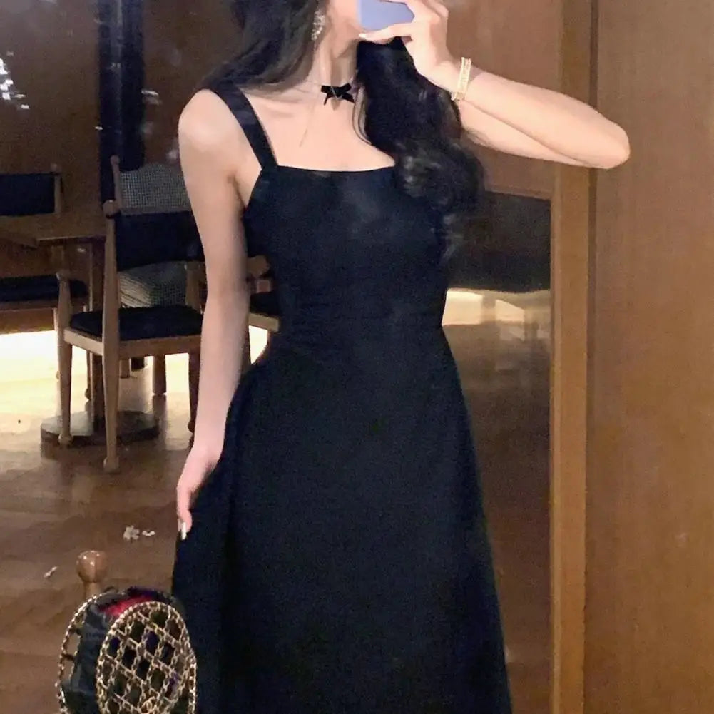 Style: Embrace elegance with this solid color dress featuring a square neckline, nipped-in waist, and A-line silhouette that beautifully complements your figure. The suspender design adds a touch of sophistication to elevate your look.