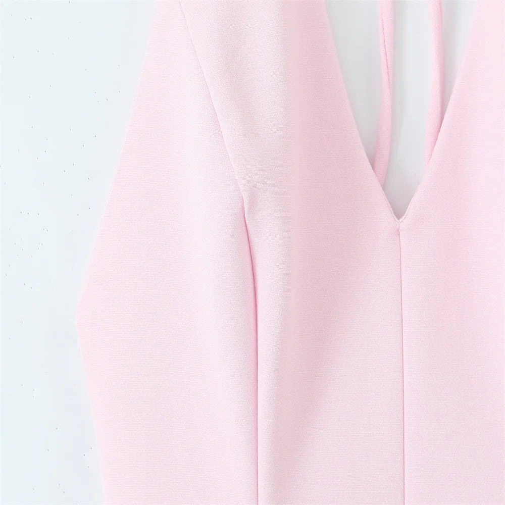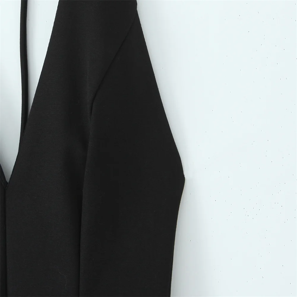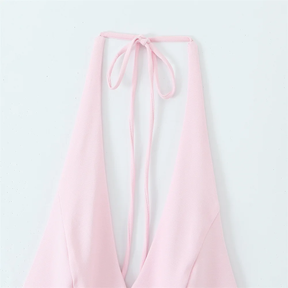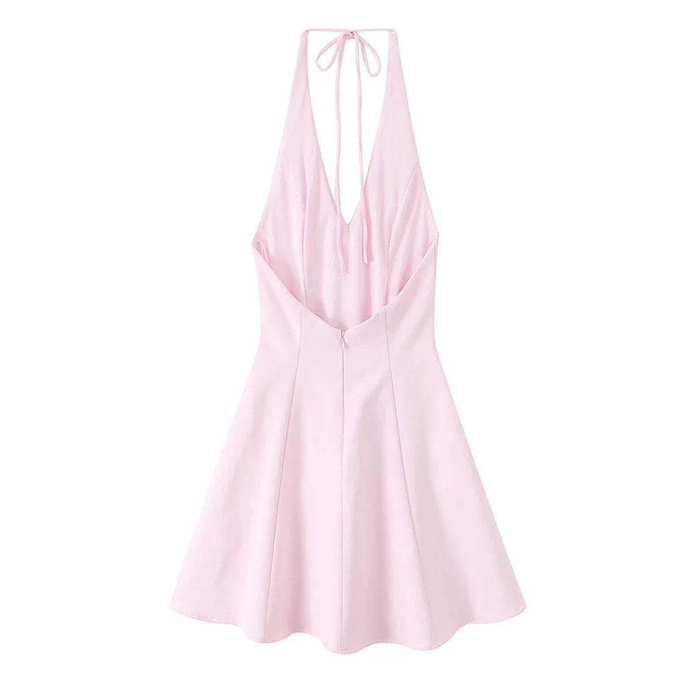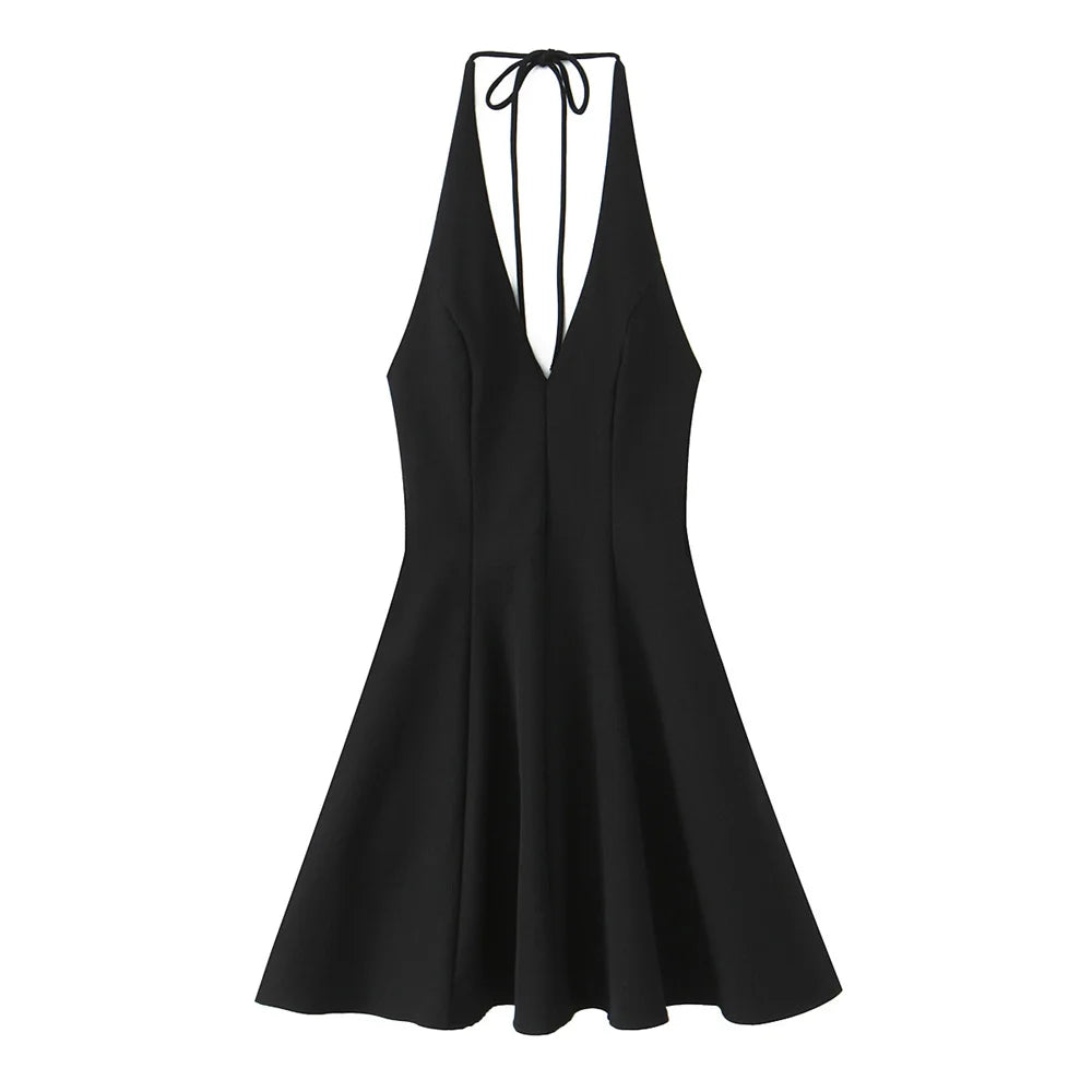 UNIZERA Women's Wave style Hanging Neck Short Dress V-neck Sleeveless Back Zipper Exposed Back Summer New Fashion Dress