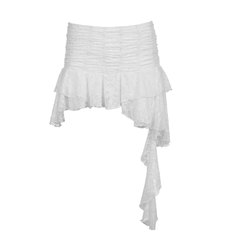 Vintage Lace Asymmetrical Skirts Sexy Mid Waist Mini Skirts Women French Fashion Streetwear Ladies Y2k Clothes
