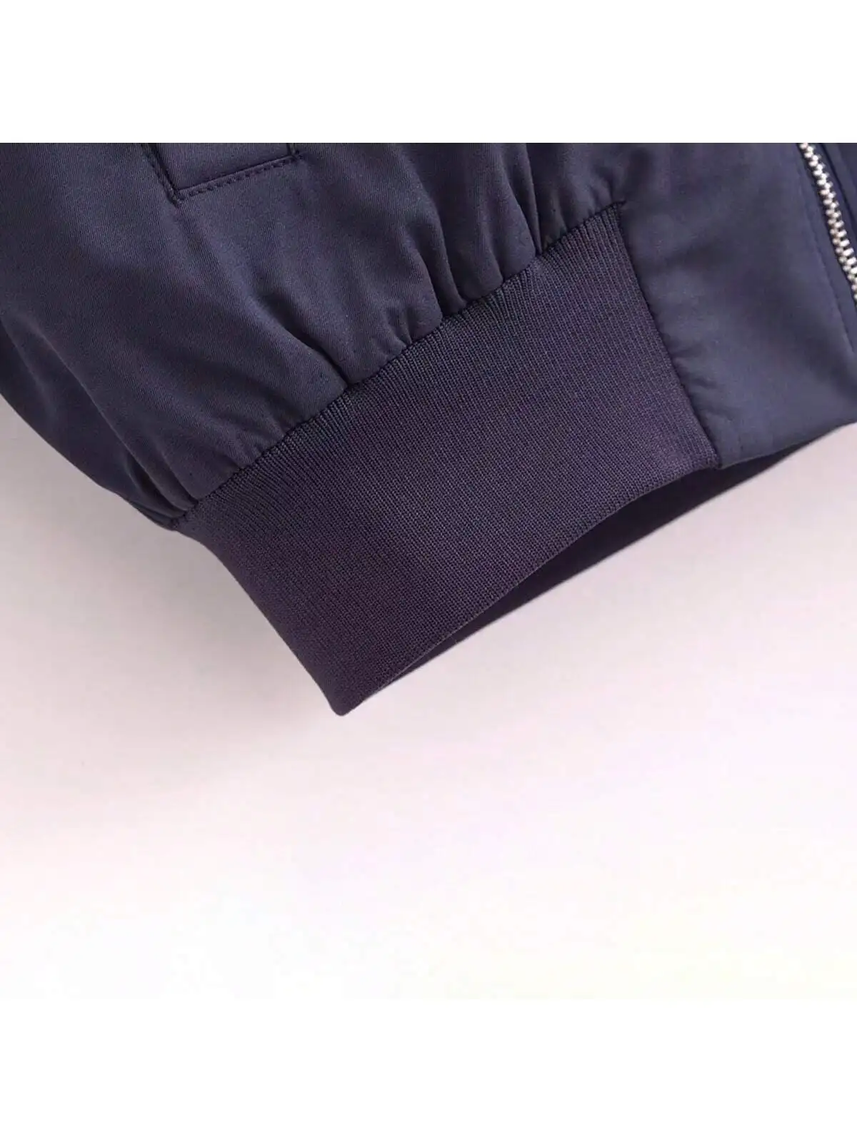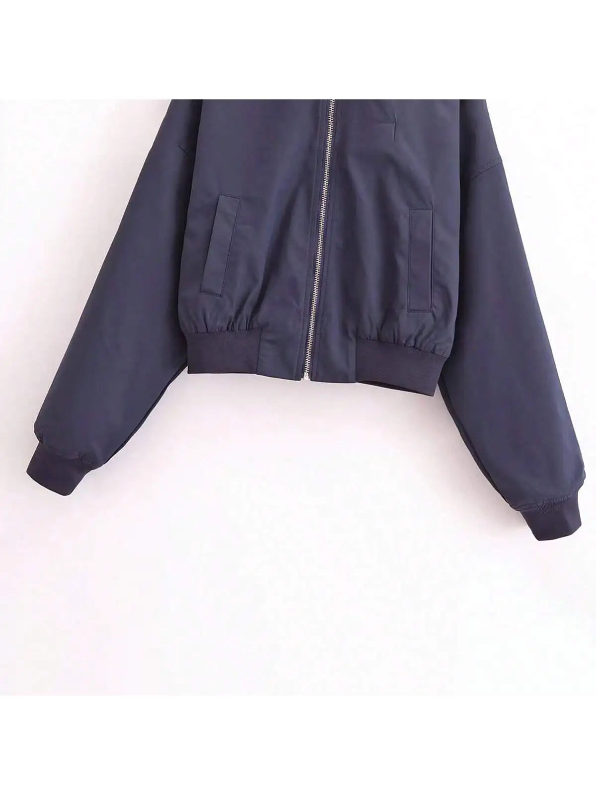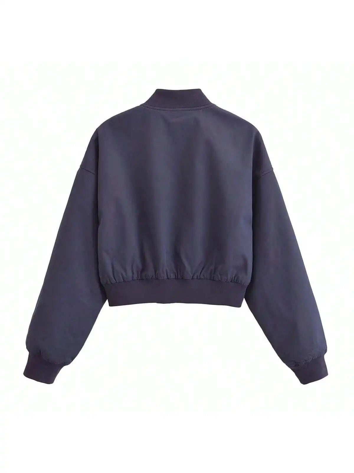 Women Casual Versatile Baseball Jacket Short Jacket 2025 Female Fashion Navy Long Sleeves Jackets