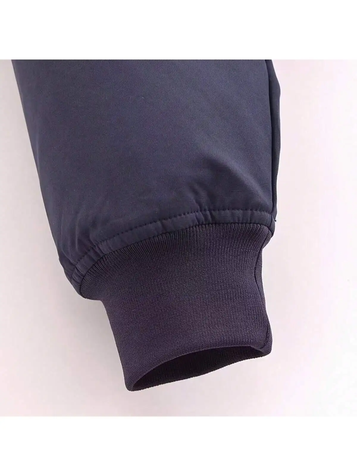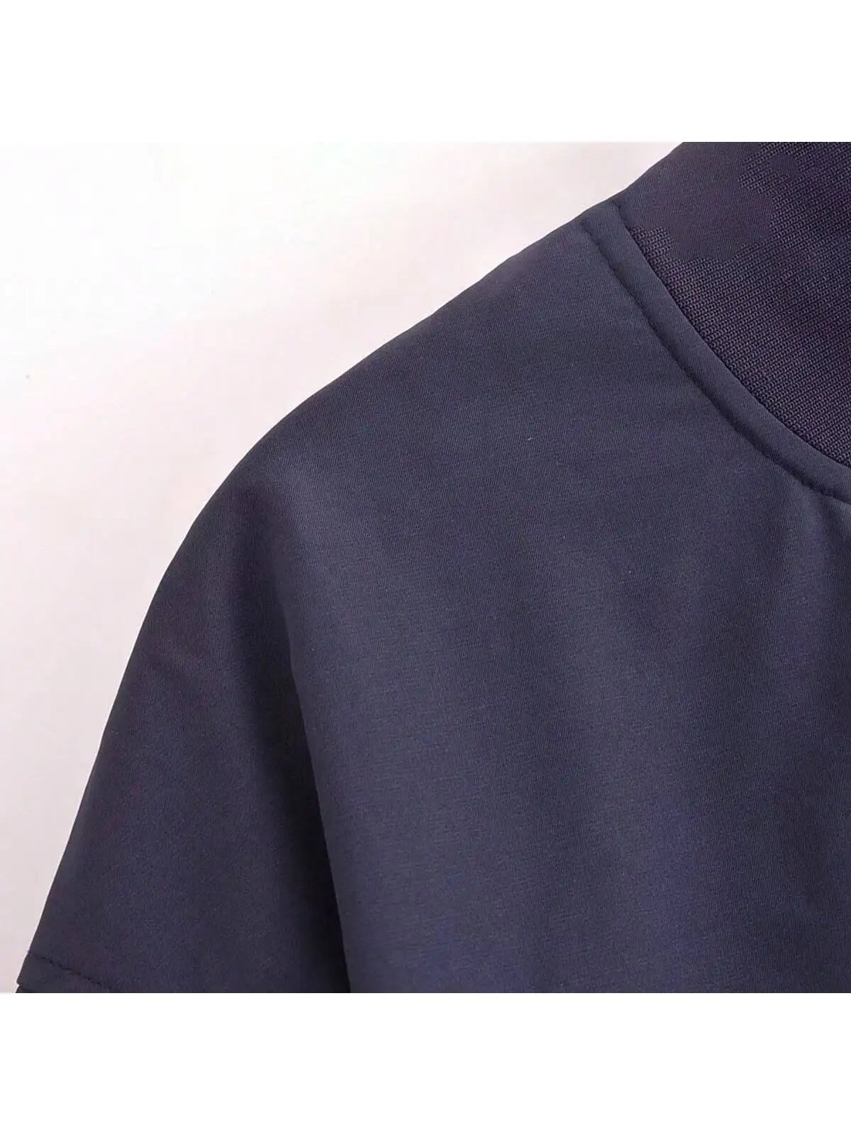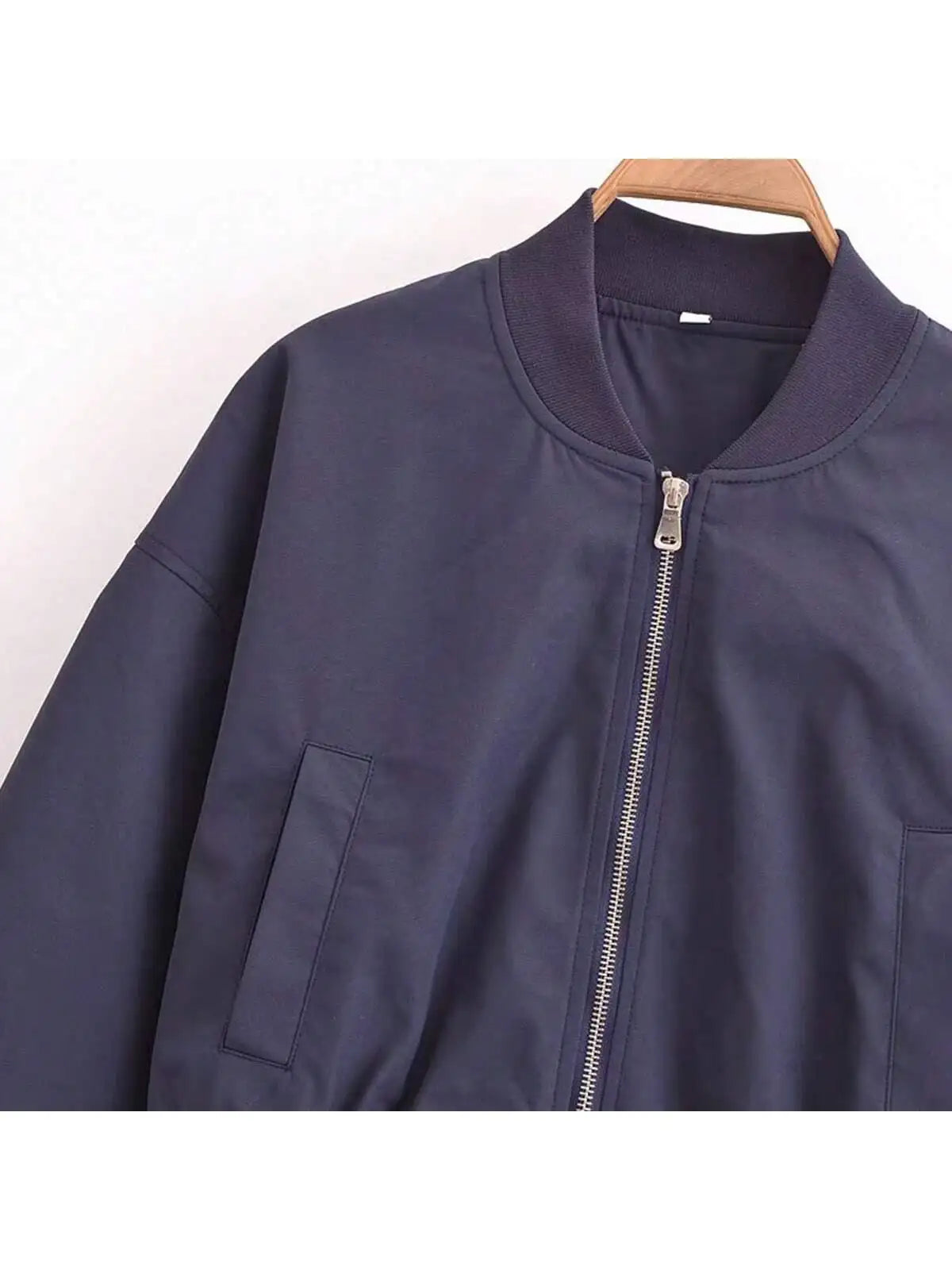 Women Casual Versatile Baseball Jacket Short Jacket 2025 Female Fashion Navy Long Sleeves Jackets