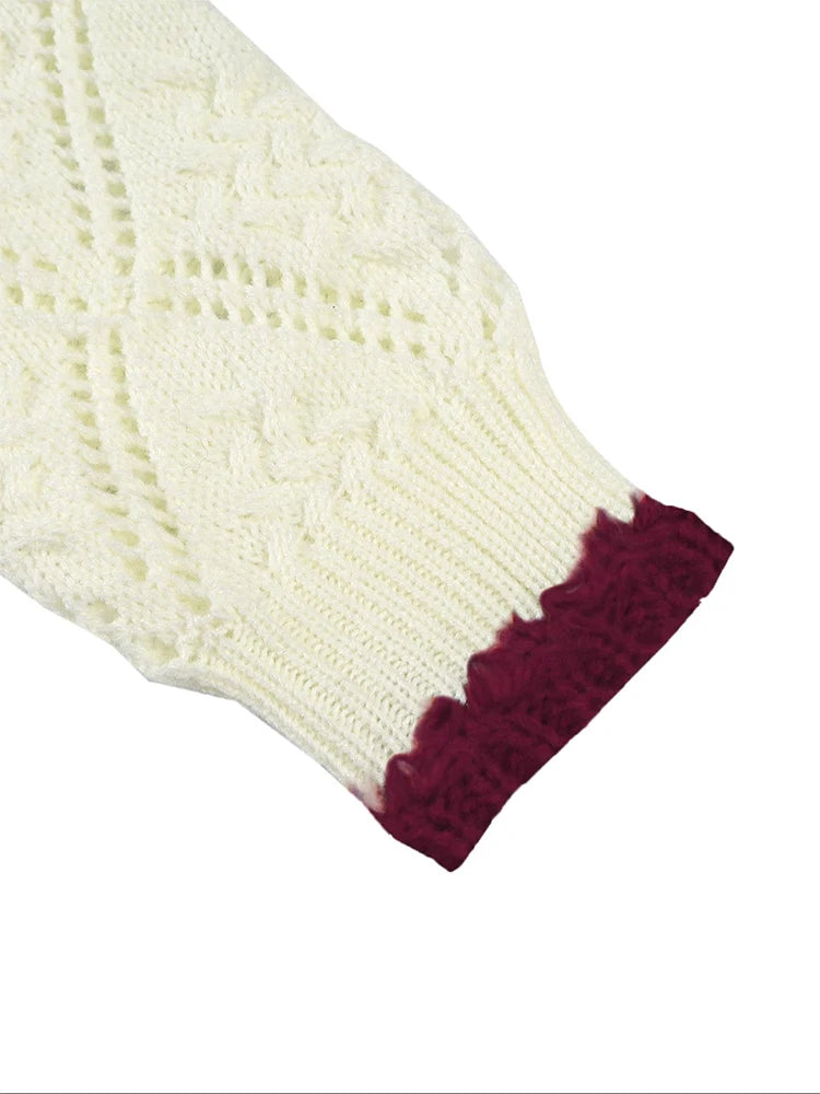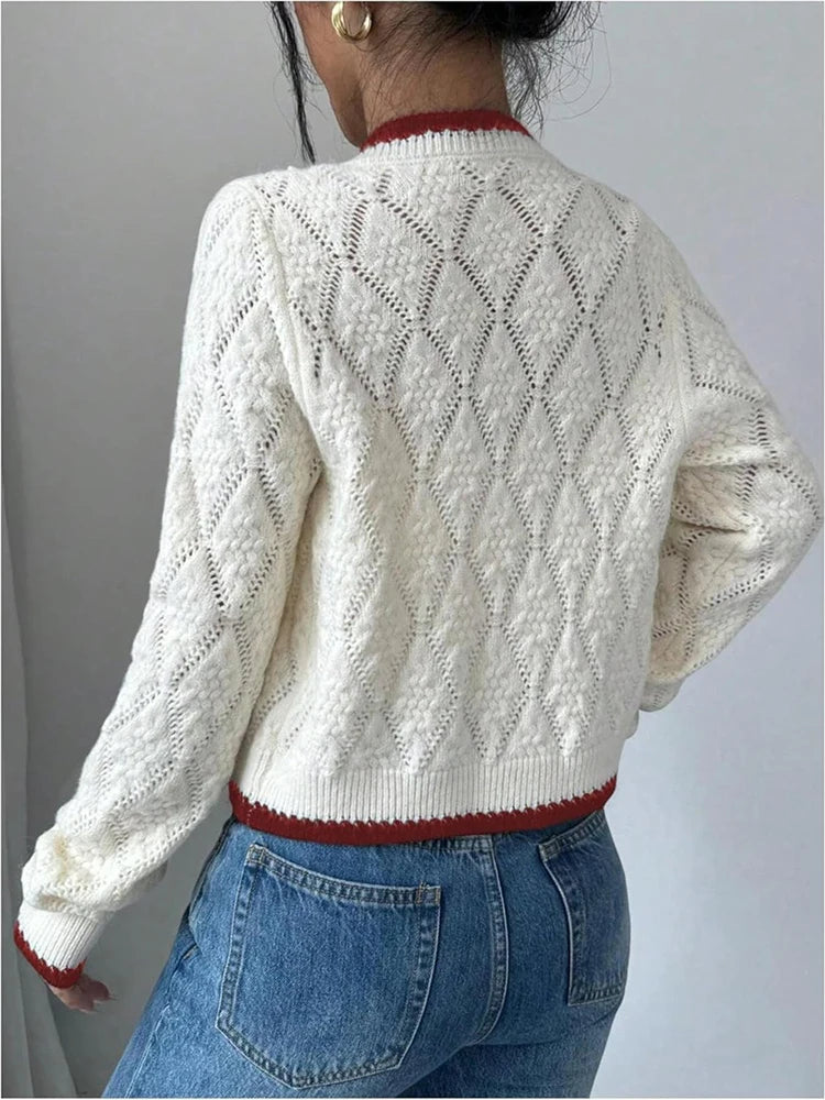 Women's Casual Long Sleeve Knitted Cardigan Rhombus Pattern Contrasting Trims Autumn/Winter 2024 New Design