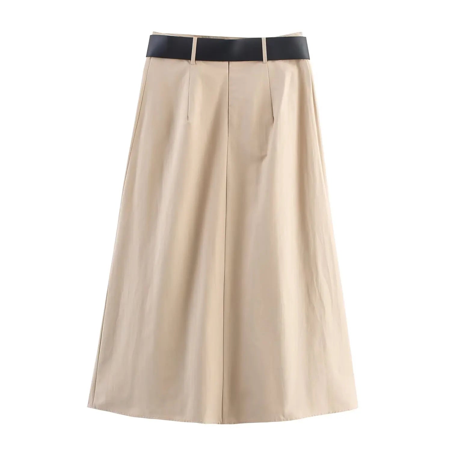 Women's Khaki Skirt 2025 New Arrival Elegant and Beautiful with Belt Cape-Style Midi Skirt with Belt