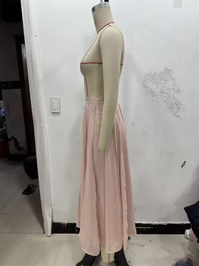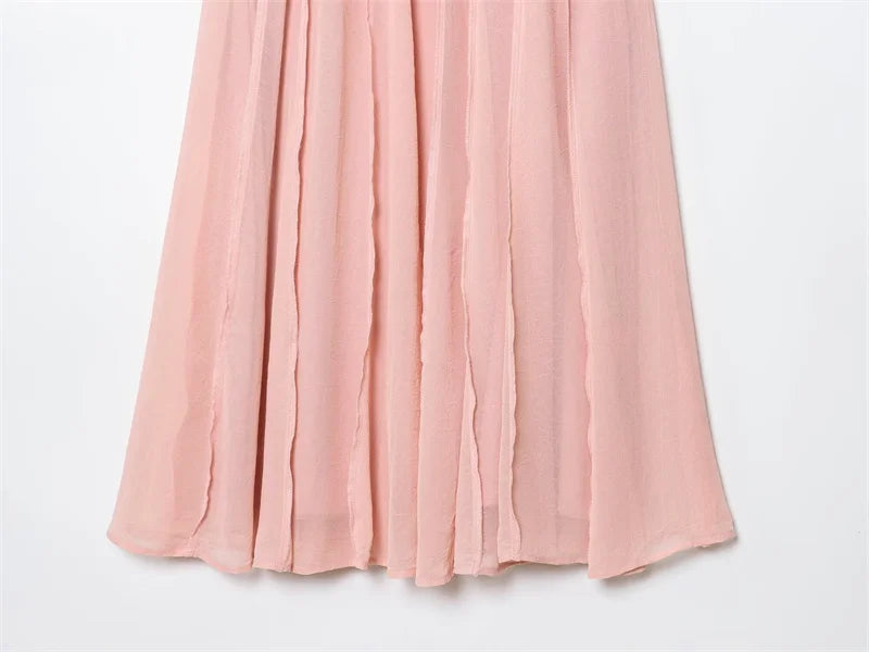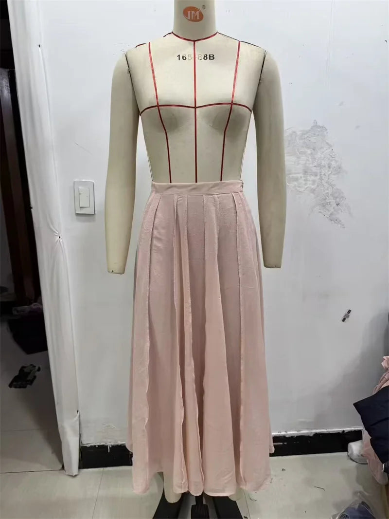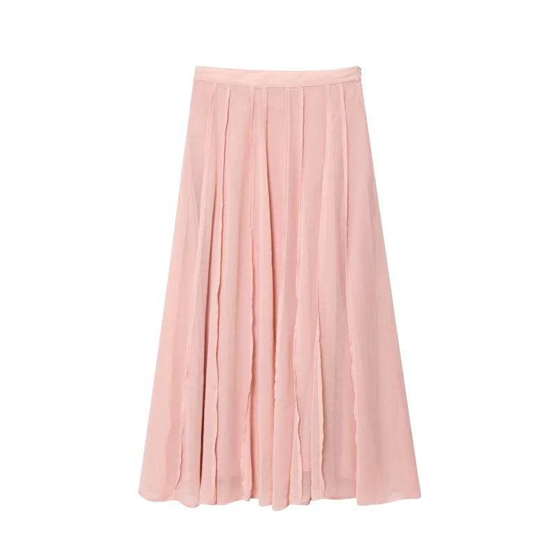 Women's Skirt Fall 2025 New Pink Translucent Midi Skirt Casual Fashion Gentle and Lively Personality Versatile